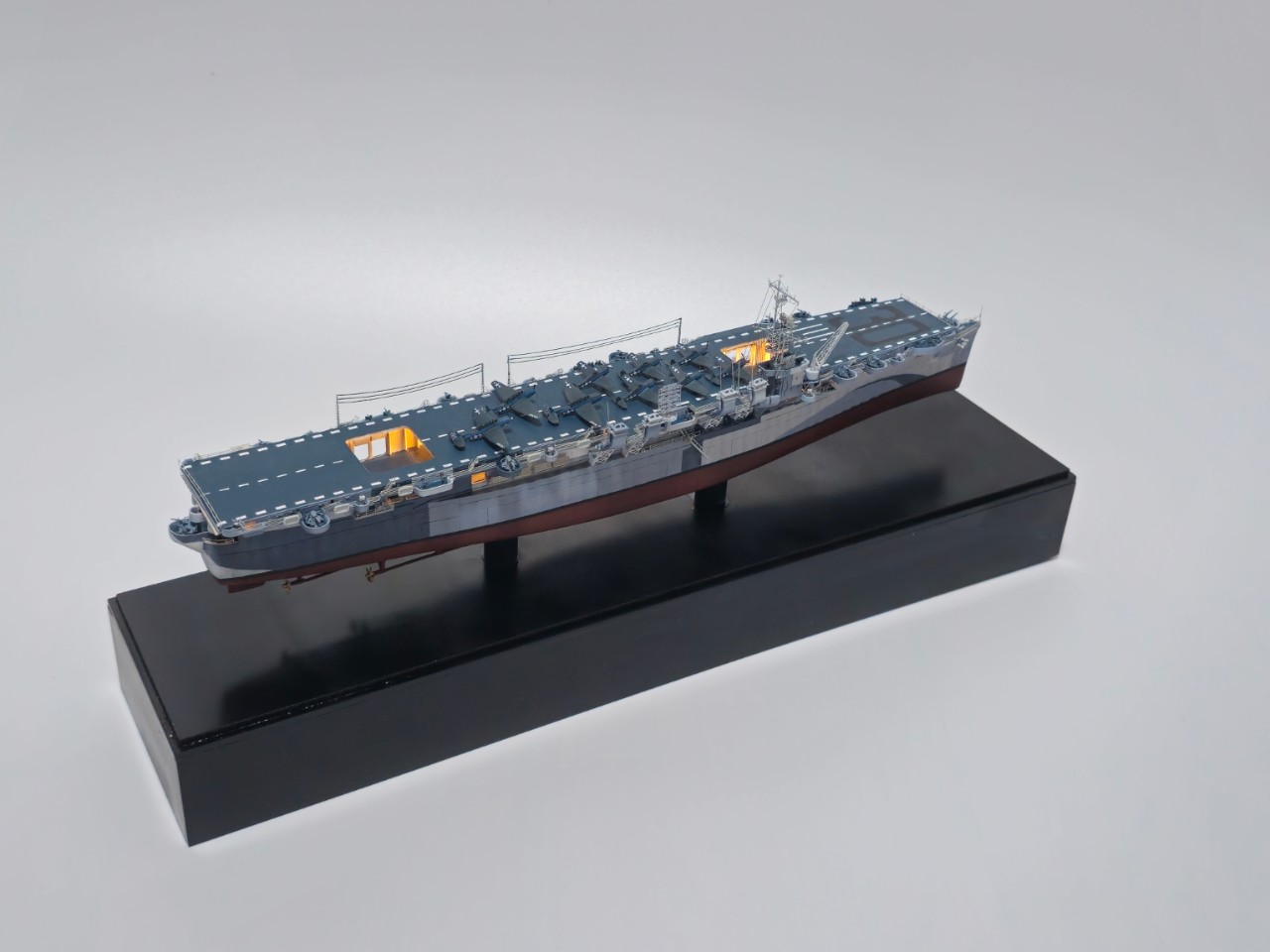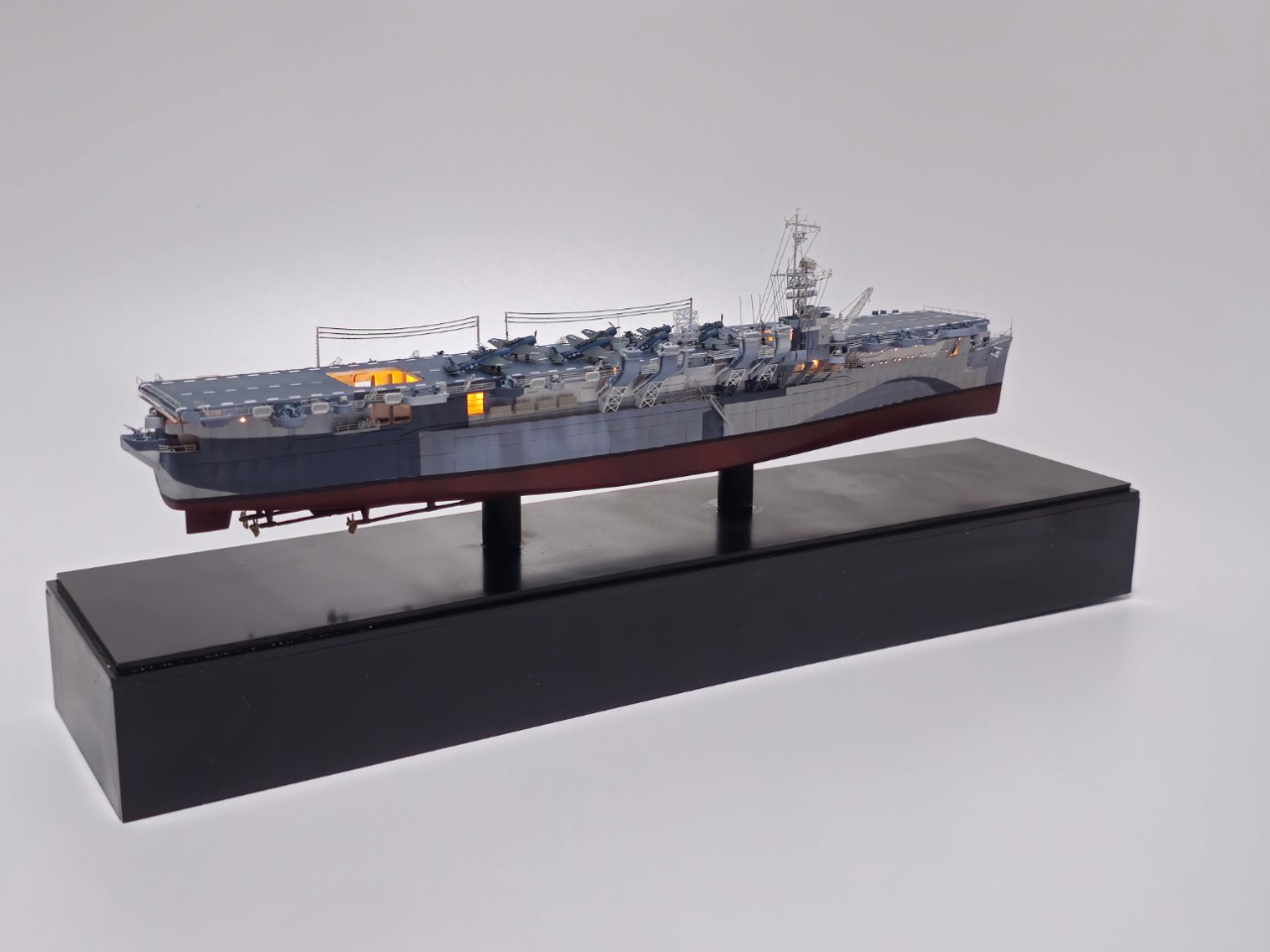 이번 작품은 비하비의 1/700 인디펜던스급입니다. 해당 킷을 바탕으로 드래곤의 인디펜던스급의 하부 헐과 데칼, 일부 부품을 이용해 인디펜던스급의 샌 재신토를 만들었습니다. 비하비 킷을 처음 받아봤을때는 상당히 만족스러웠습니다만, 직접 만들어보니 구조물이 아예 구현이 되어 있지 않아 자작해주거나 드래곤 킷에서 부품을 적출해서 만들어준 부분들이 있습니다. 특히, 비하비의 선체와 드래곤의 선저가 잘 맞지 않아 에폭시 퍼티를 이용해 다듬어주었습니다.