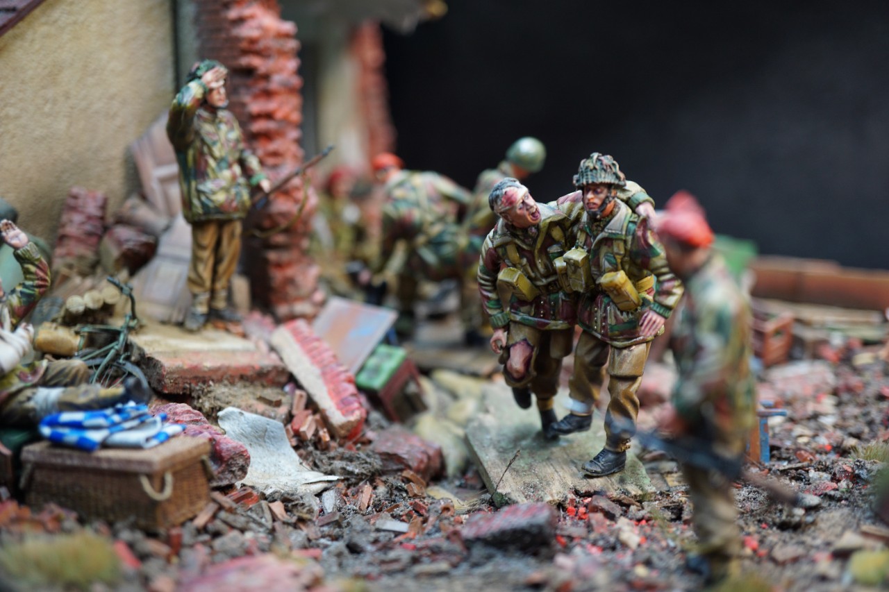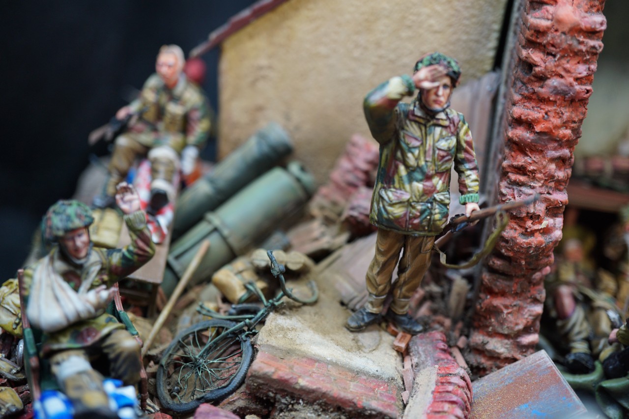 마켓가든작전의 실패가 명확해진 시점, 움직일수 없는 부상병과 자원자들이 진지에 남고 경상자들과 몇몇 병사가 후퇴한다. 떠나는 병사들은 죄책감이 뒤를 돌아보지만 남은 병사들은 웃는얼굴을 하려고 애쓰며, 손으로 브이자를 그리면서 보내준다.