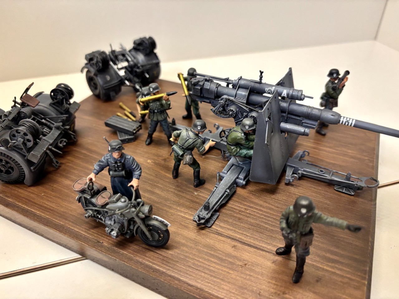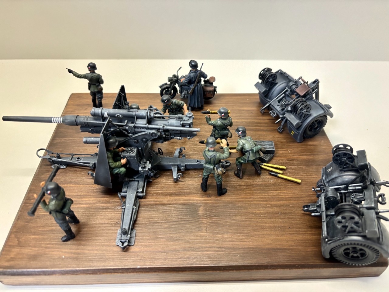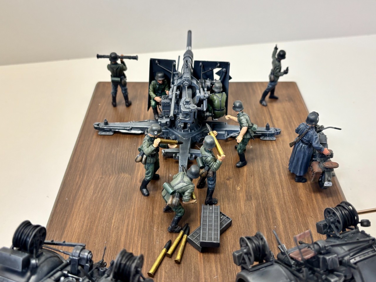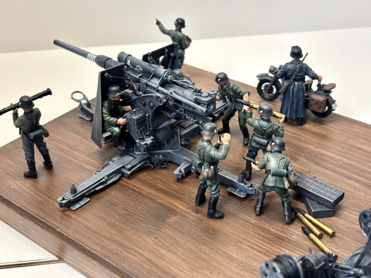 German 88mm GunFlack 36/37 88mm (Tamiya) with Figures & MotorCycle
