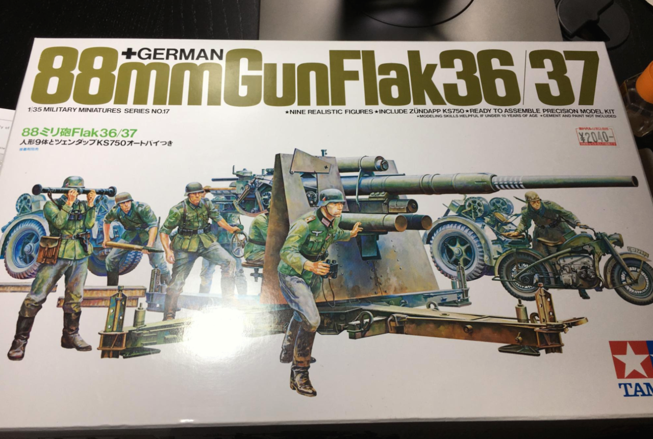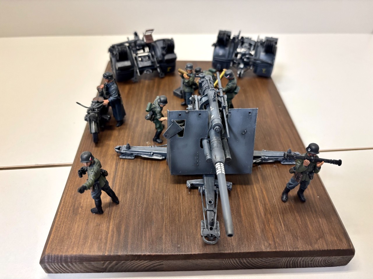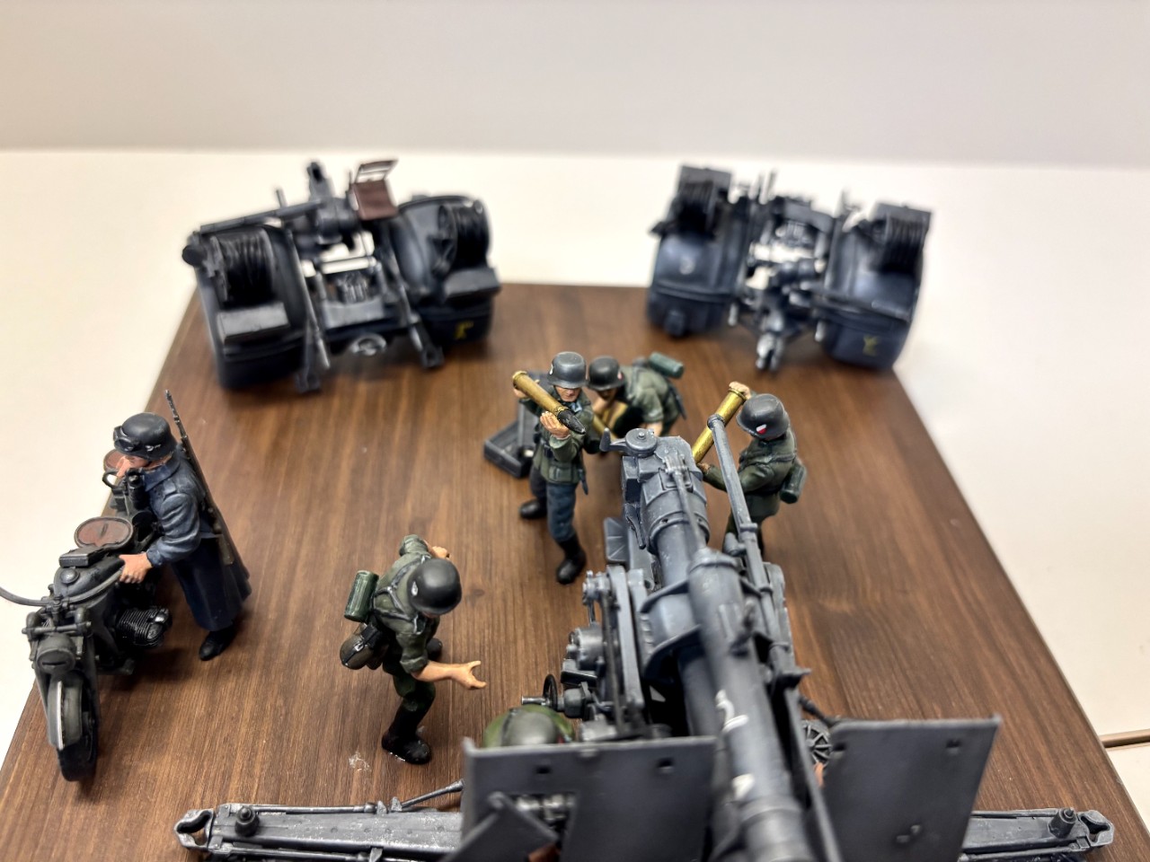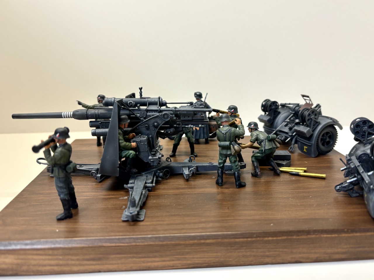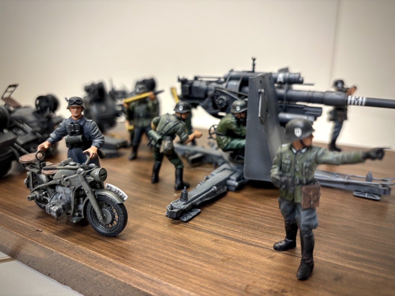 German 88mm GunFlack 36/37 88mm (Tamiya) with Figures & MotorCycle