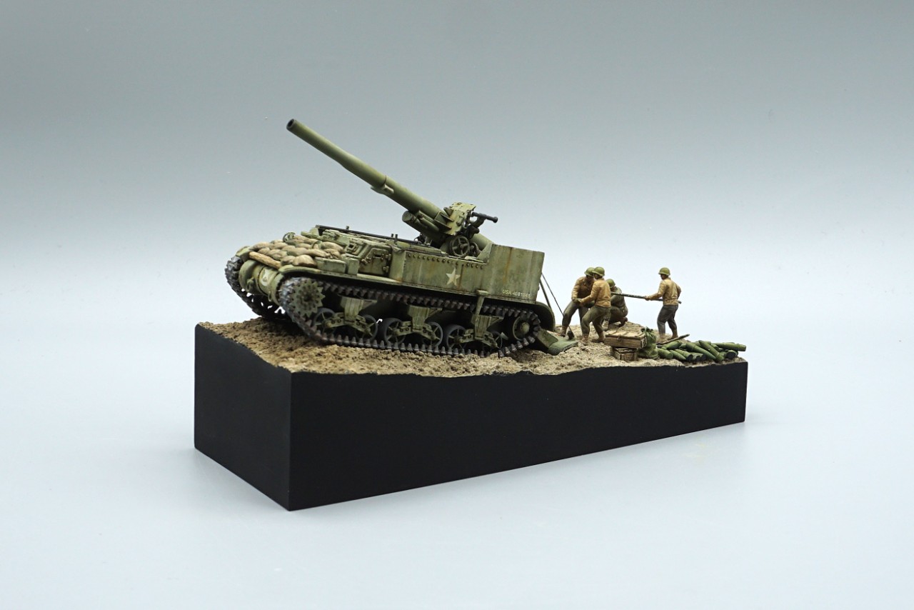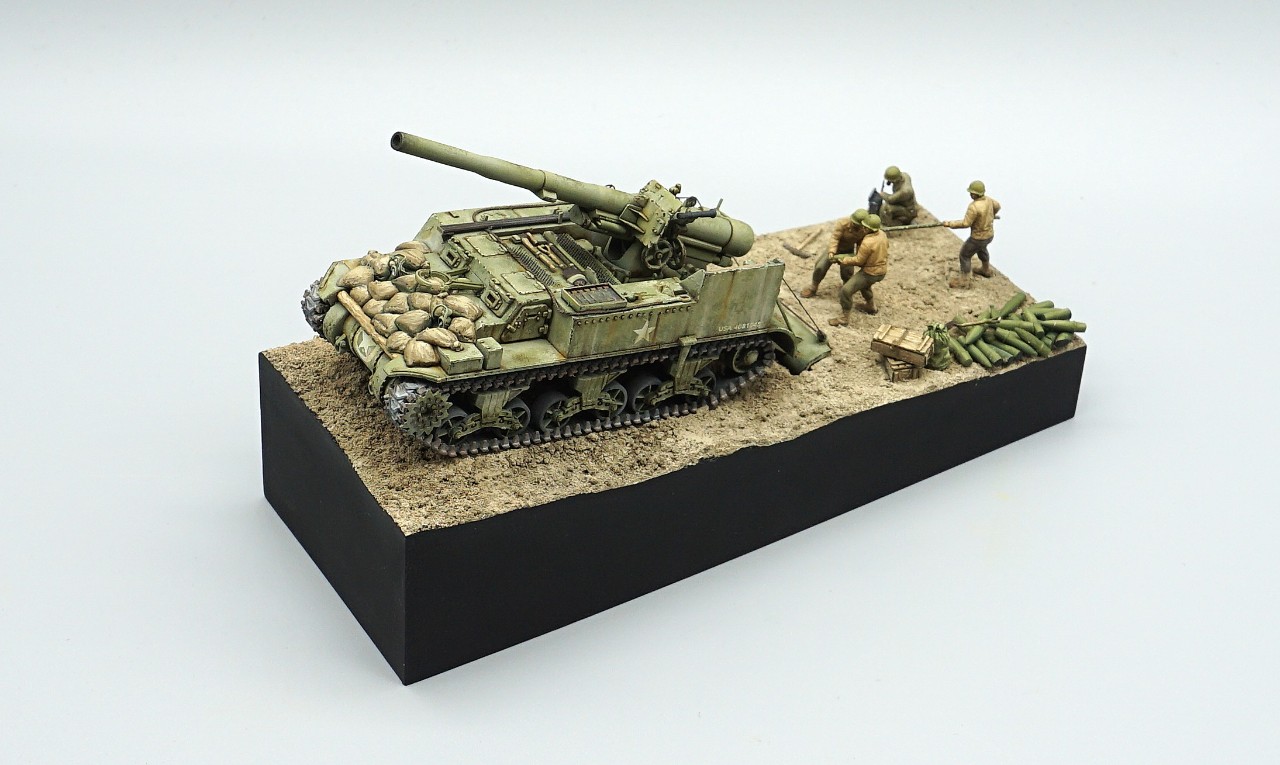 인형은 이베이 영국 판매자가 3D 자체 제작한 걸 사용했는데 원래 155mm 견인포에 장전하는 장면으로 어차피 포 자체는 자주포와 같은 것이라 그대로 사용했습니다. 가장 어렵고 오래 걸린 부분은 지면과 베이스였는데 인공물보다 자연물이 훨씬 표현하기 어렵다는 걸 또 한번 느꼈습니다.