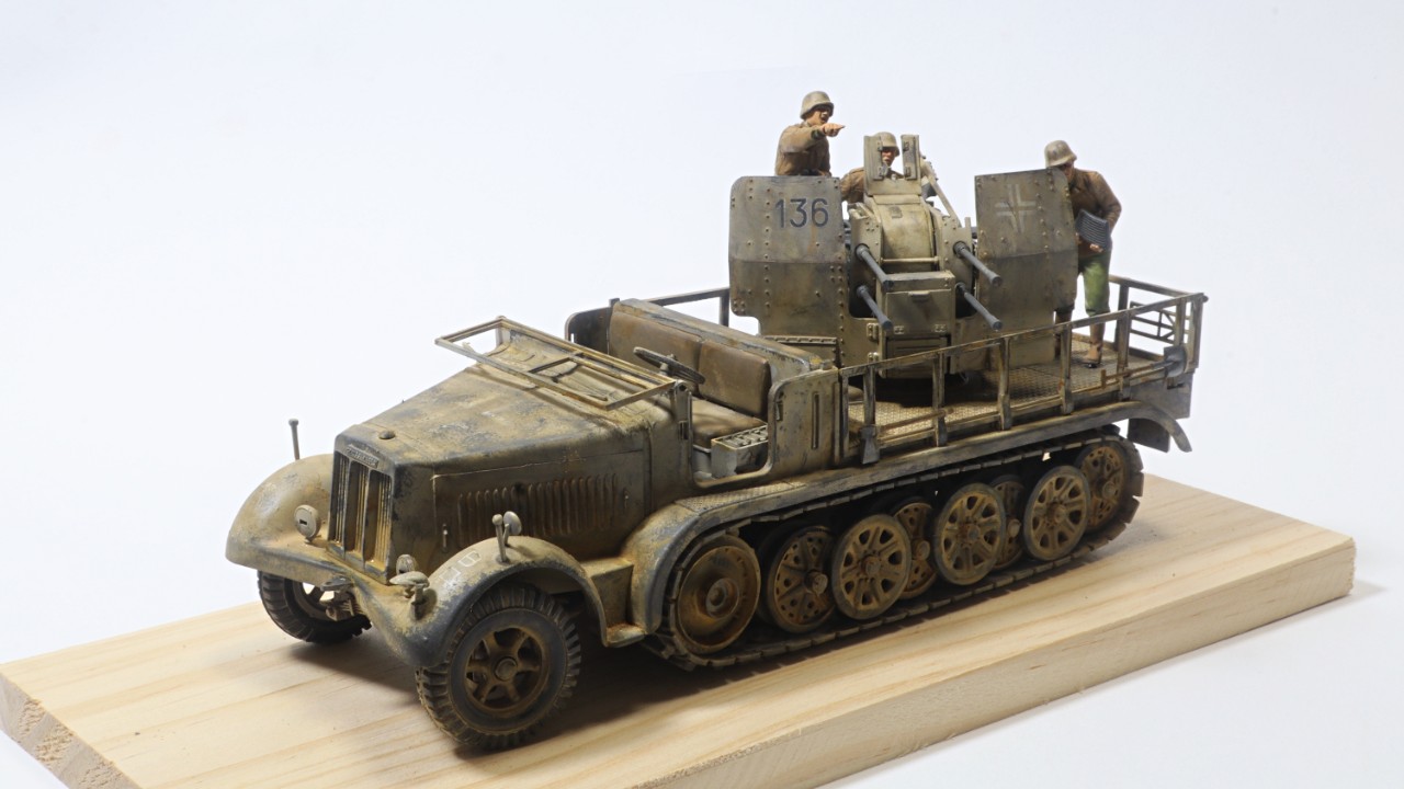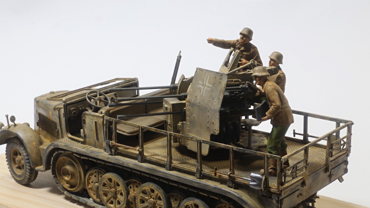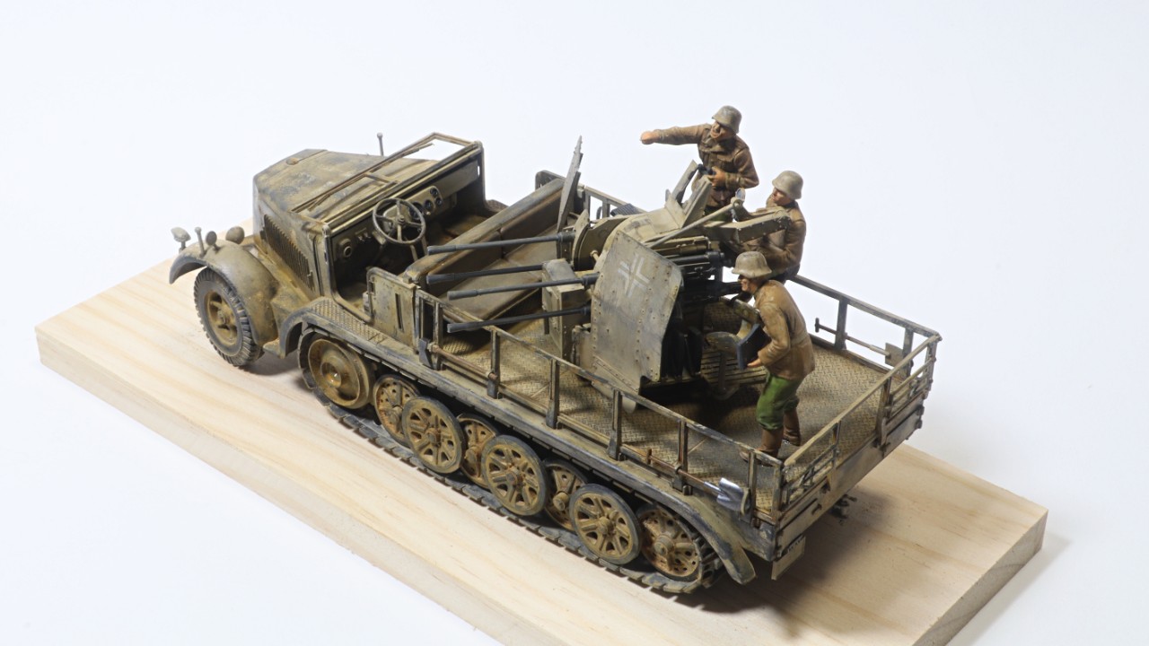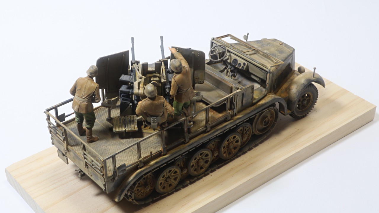 타미야 1/35 8톤 하프트랙 대공차량에에 하비보스 피규어, 그리고 아카데미 하노마그 데칼을 사용하여 만들었습니다.