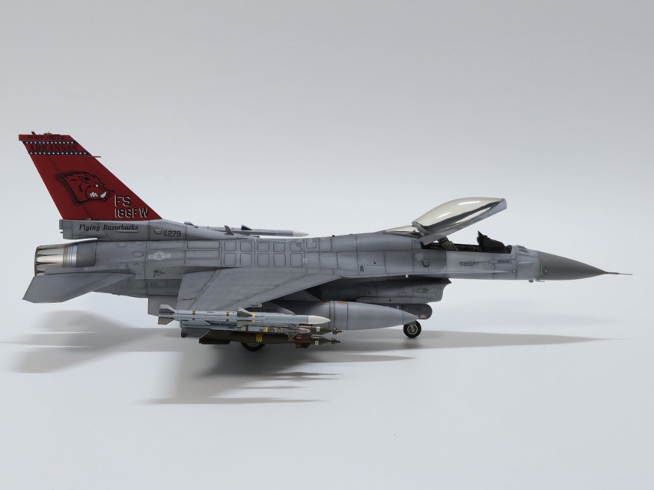 F-16C Block 25_32 188th FW 버전의 데칼을 선택해 사용했구요, 기체 도장은 설명서에는 3색 도장으로 되어 있는데 실기체도 2색 도장 적용한 기체가 보여 나름대로 고증을 따라가면서 도색 공정을 의도적?으로 줄여 보았습니다.