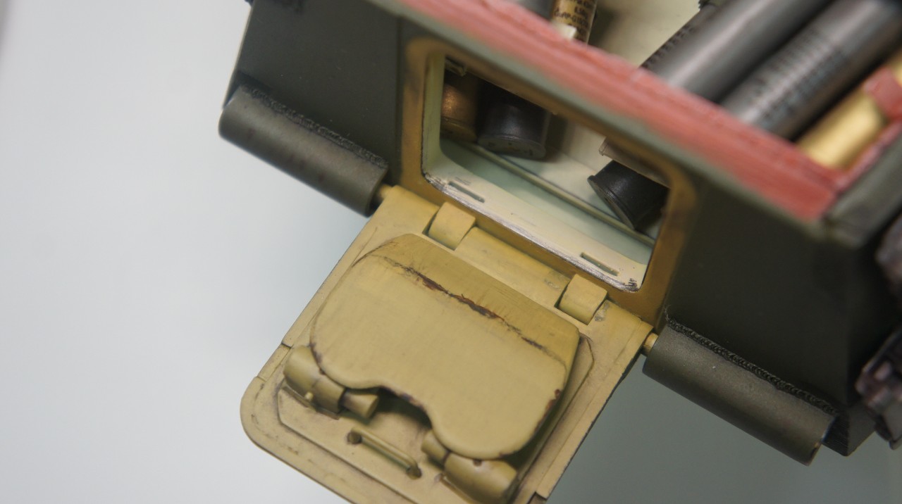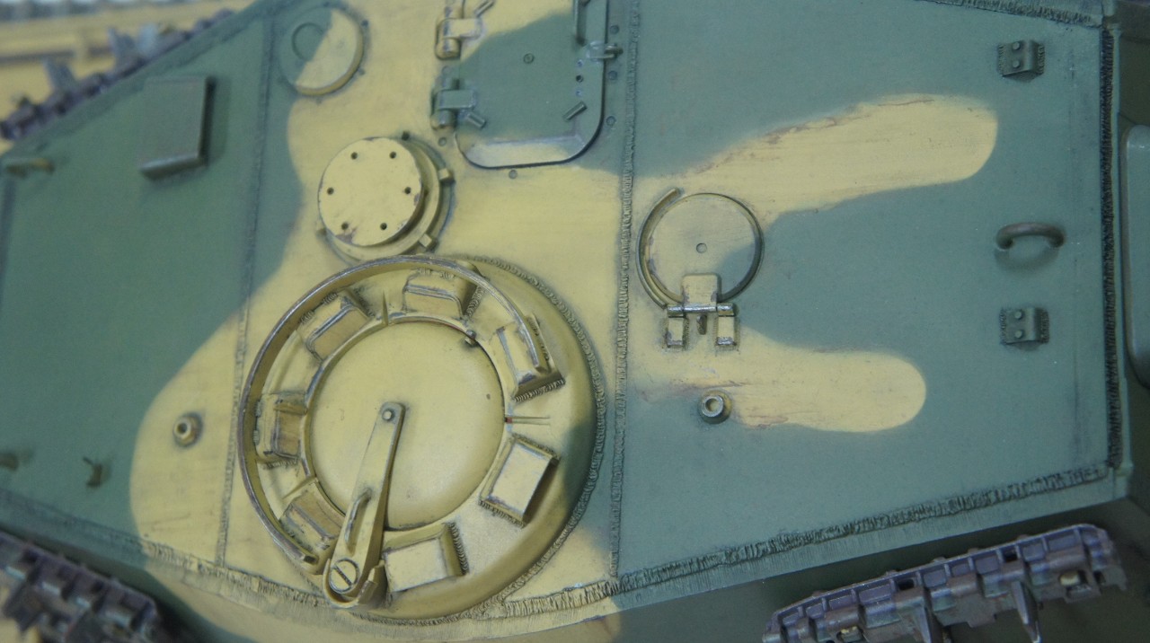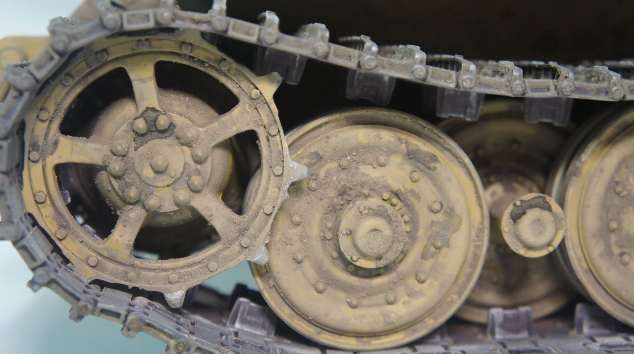 궤도 진흙표현은 실제 흙과 아크릴 섞어서 사용하고 웨더링은 에나멜과 웨더링펜슬을 사용 했습니다 포탑과 차체 지붕 열리게 하는 작업이 어려웠습니다