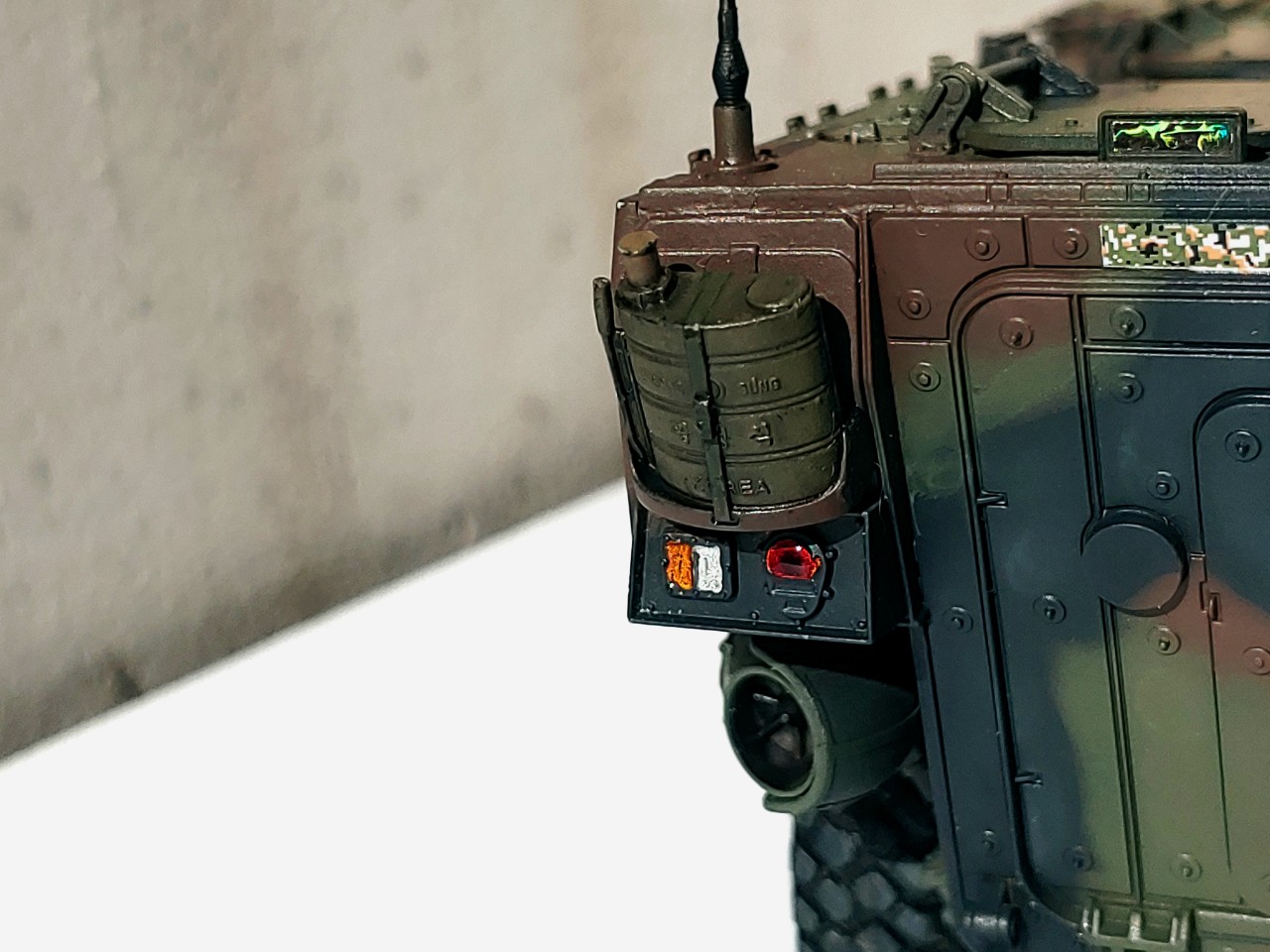 국군의 날 사양을 위해 측면 군장 결속끈을 달지 않고, 타이어 흙먼지를 제외한 웨더링을 자제했습니다.