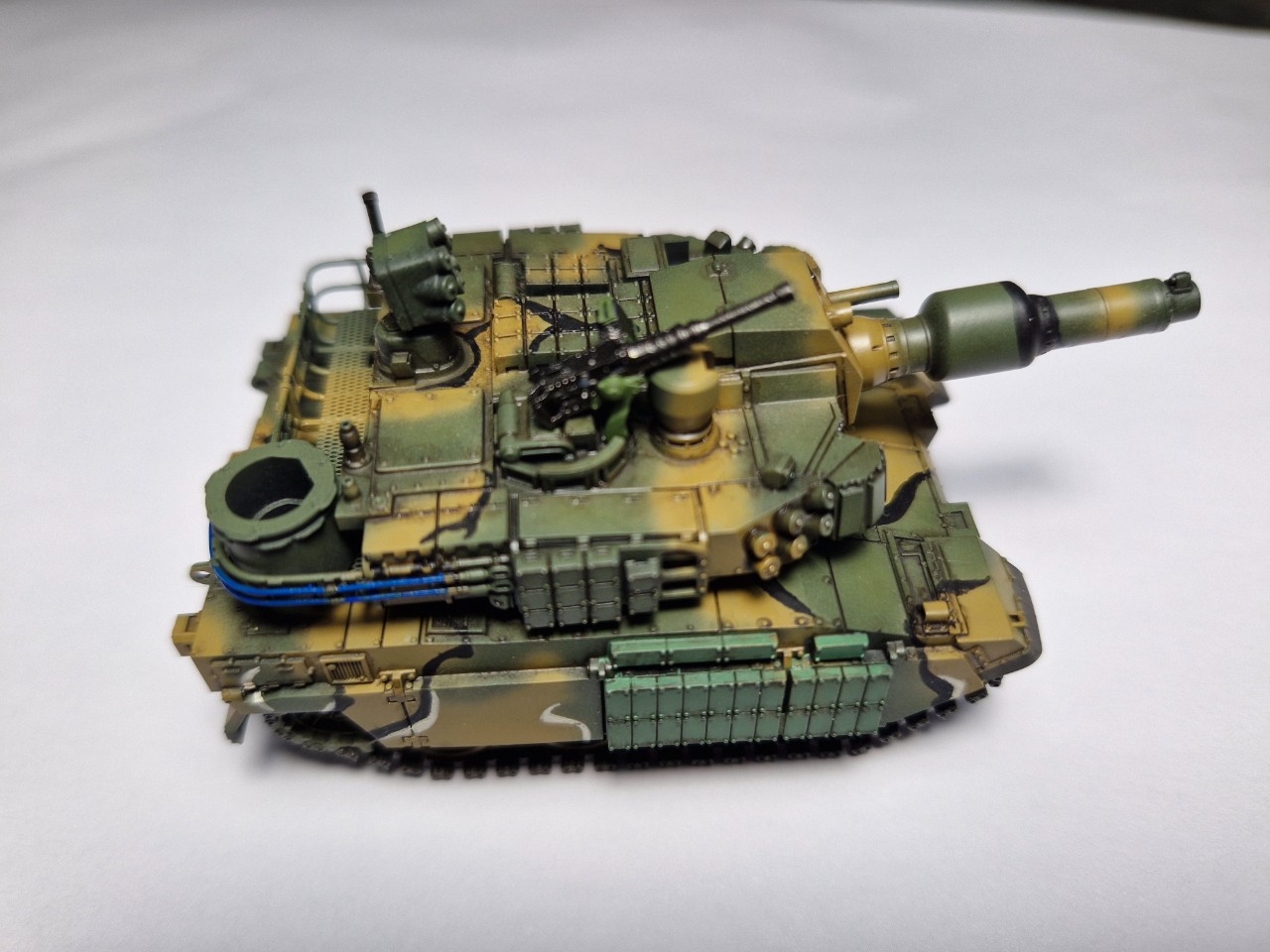 도색 기준은 아카데미과학 K-2참조(그린과 브라운은 에어브러쉬로 프리핸드, 지렁이는 붓작업) 했고, 제조사는 기억이 안나지만 퀄리티는 좋네요. 전차상부와 하부는 고정장치없이 단순 올려놓는 것이어서 상부와 하부에 자석을 넣어줬습니다. ^^
