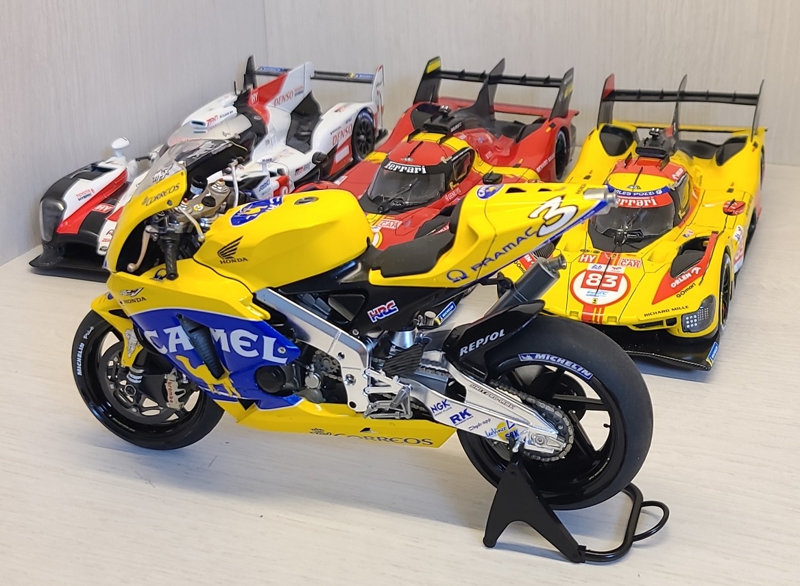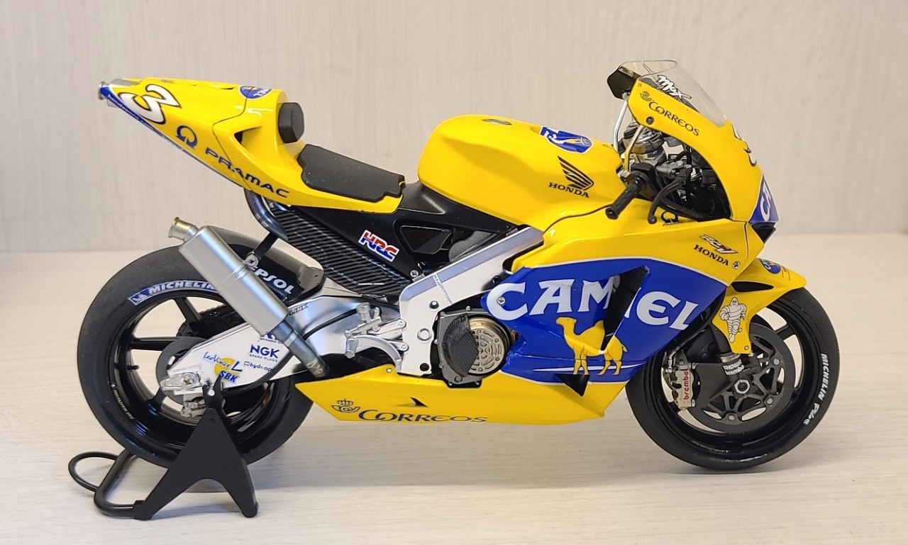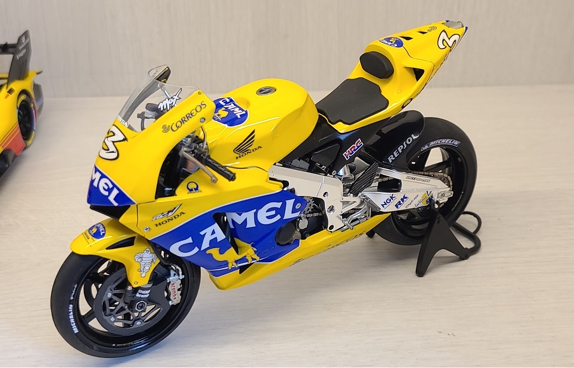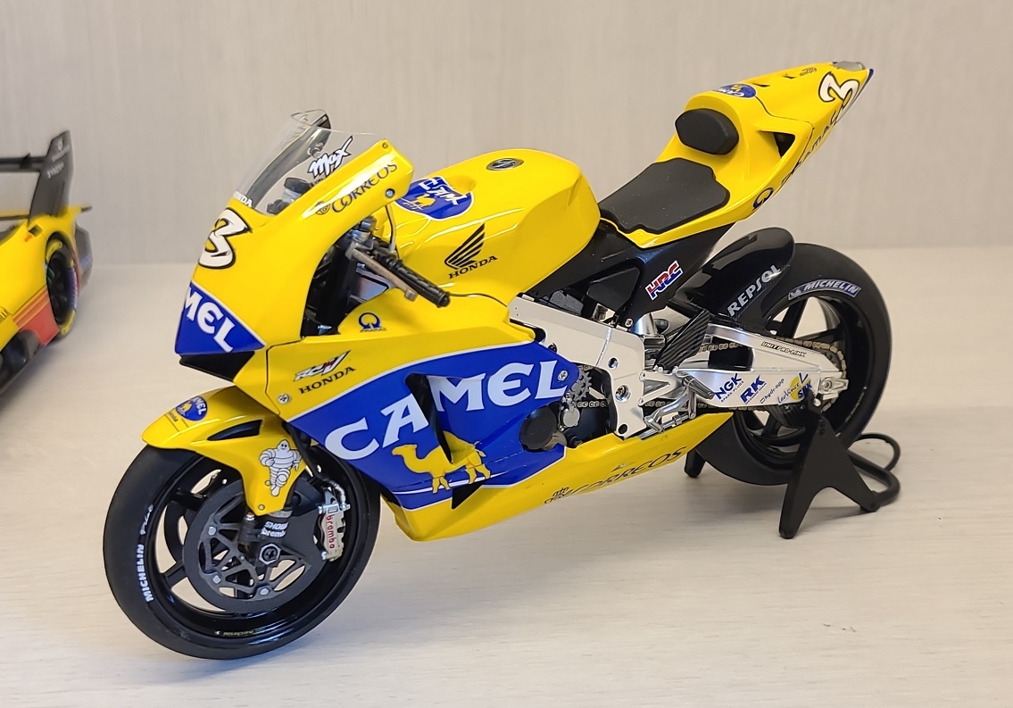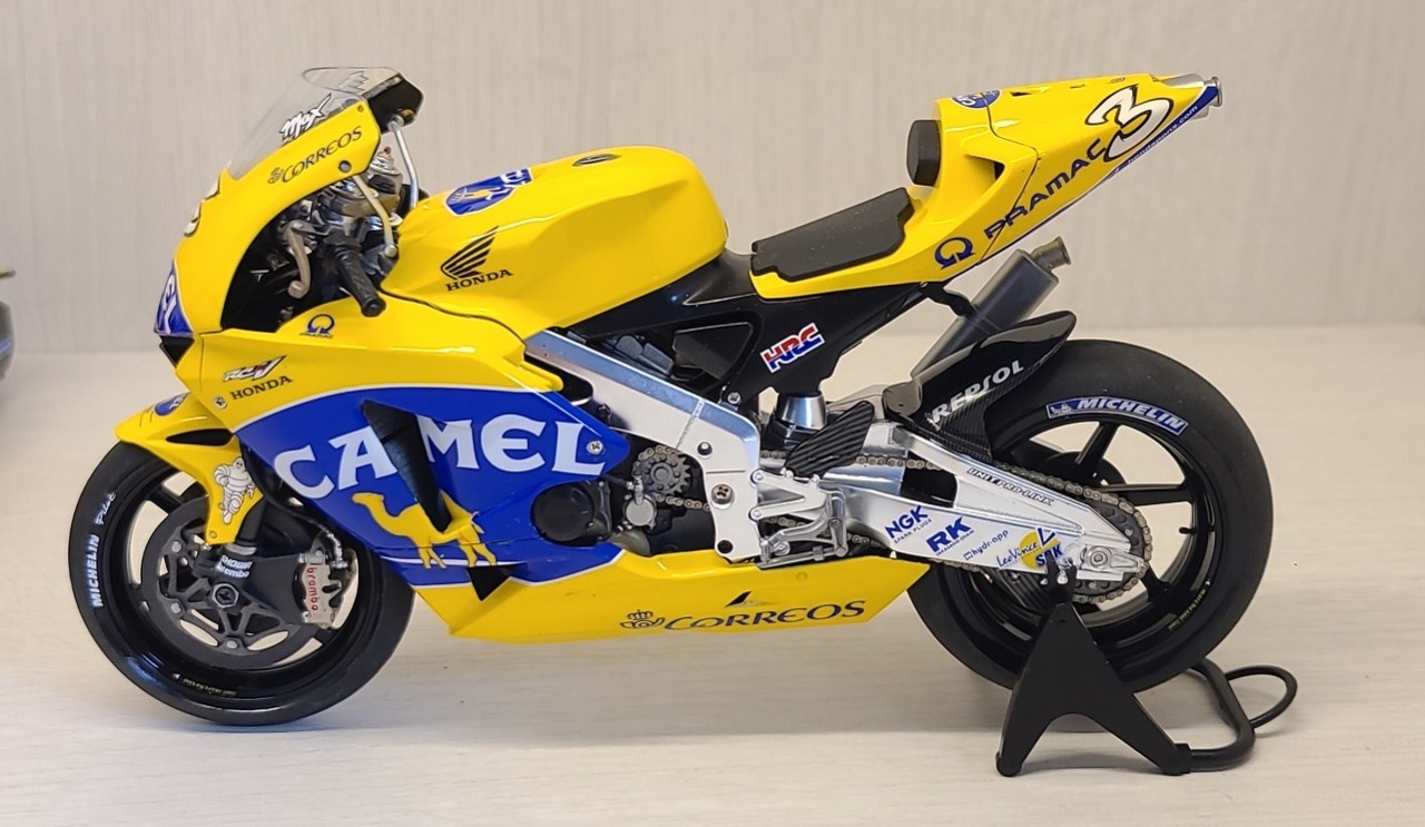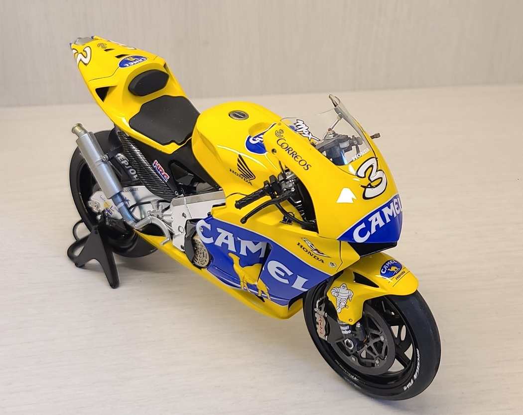 역시 타미야의 명킷이죠. 혼다 RC211V. 그 중에서도 '03년 출전 버전을 '04년 버전으로 살짝 개조하였고 담배 리버리인 CAMEL Team 별매데칼 구해서 만들었습니다.