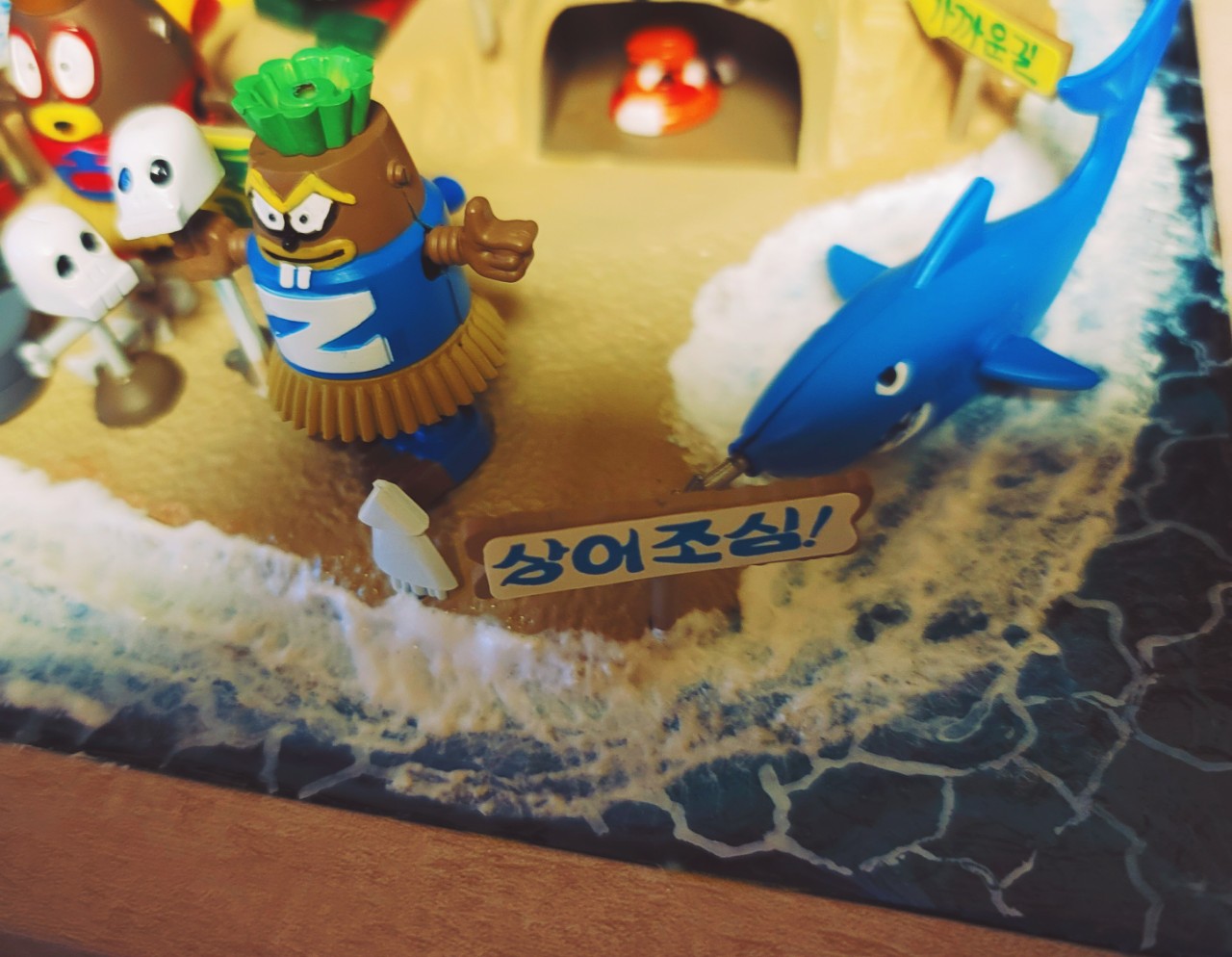 그래도 작업해놓고 나니까 그럴듯하게 보기는 좋습니다. 어릴적 로망이기도 했고, 저도 이런 섬시리즈를 갖고 싶었으니까요. 해적섬이나 보물섬이 메인이긴 한데, 그건 거의 꿈의 프라모델 같은 것이었죠. 지금은 거의 추억이 되버렸습니다. 최근 레트로 킷을 가지고 계신 매니아분들께서 이런 킷들을 오픈하시고 실체화하려는 느낌이 좀 있더랬습니다. 그 덕에 이런 추억의 킷도 구경하게 되었네요