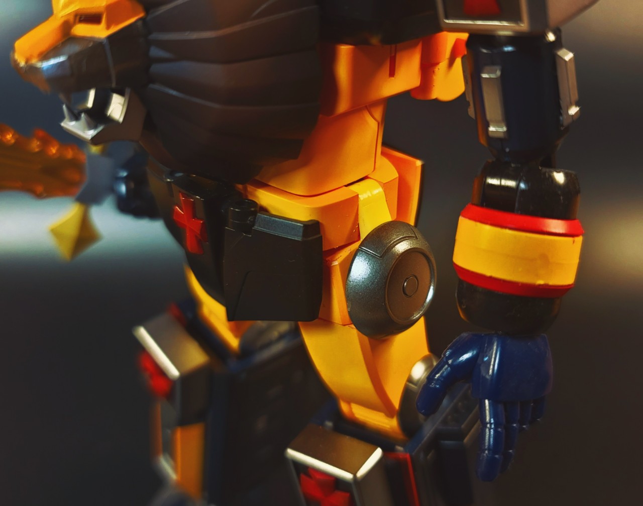 역시나 그냥 디폴트 가조립 형태는 심심하기 때문에 제가 주로 사용하는 초합금 도색을 반영했습니다. 당연히 화이트계열은 메탈실버로 교체하였고, 다른 채도컬러는 채도명암을 사용해서 그라데이션을 반영했습니다. 거의 이렇게 해놓으면 초합금 완제품 느낌이 나면서 묵직한 느낌이 드는 효과를 낼 수 있겠습니다.