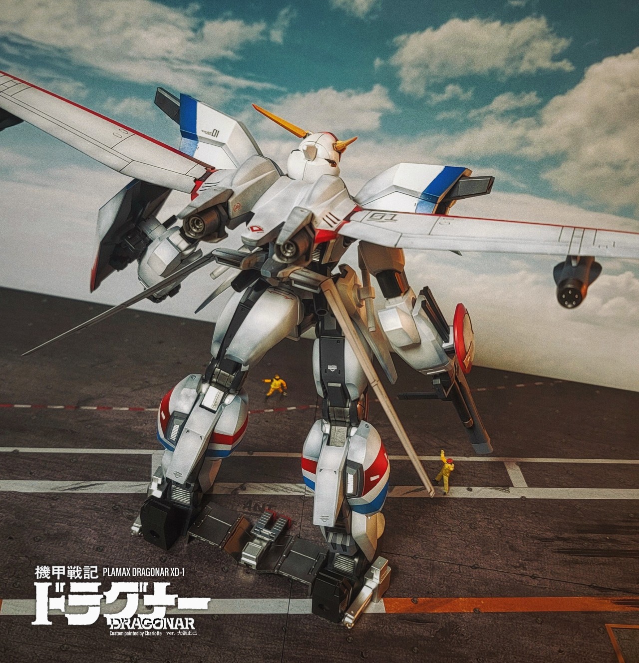 너무 크다 보니, 그냥 도색은 너무 밋밋하고 허전하기에 되도록이면 컬러분할을 다채롭게 반영해줬고, (원작을 크게 위배하지 않는 정도선에서) 기본적으로 함재기 웨더링을 흉내내서 반영해봤습니다. 특히 드라고나 오프닝을 구현해보고 싶어서 항모갑판 베이스와 캐터펄트설정, 그리고 수신호 가이드등 소소하게 설정해서 최대한 오리지널의 오마쥬처럼 설정했습니다.