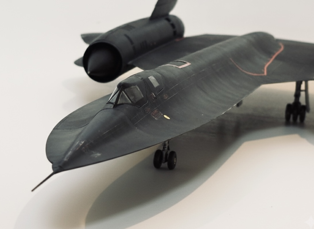 레벨 신금 1/48 SR-71A입니다. 전장이 68cm로 굉장히 큰데 폭은 35cm 가량으로 그리 길진 않습니다. 키트 자체 프로포션으로는 엔진두개와 마킹 4개 그리고 스탠드 이렇게 있고 데칼 품질은 좋았습니다 조립성은 크기치곤 꽤 괜찮은 편에 속했으며 도장은 프라이머 없이 뉴트럴 그레이 베이스에 라이트 그레이로 패널라인을 비롯해 얇게 도장해주고 세미글로스 블랙으로 은은하게 올려주었습니다. 웨더링은 타미야 라이트 그레이 패널라인 악센트로 열변색 결을 내줬습니다. 감사합니다 : )