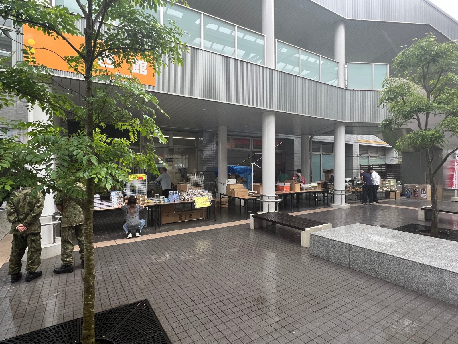 가게 차리는 중인 자위대 기념품점.