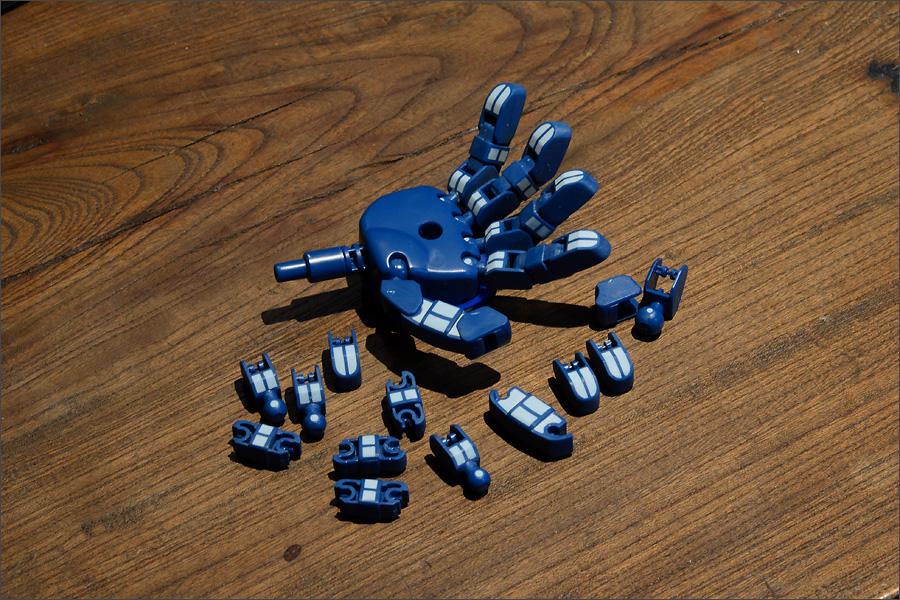 그런데 가동식으로 설계된 큼직한 손가락 부품들이 골다공증 마냥 속이 텅텅 비어 있습니다.
