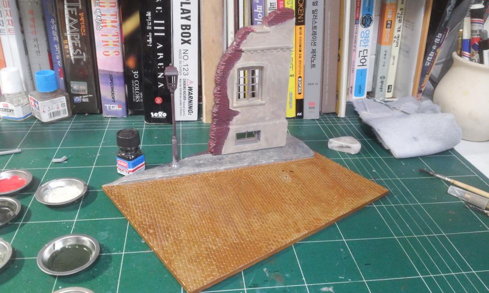 현재 제작하고 있는 디오라마 배경이온데 초벌은 서페이서로 칠하고 에어브러쉬로 기본색을 올린뒤