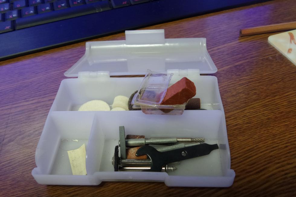 드러멜 드릴 공구 안에 있는 물건인데요 딱딱한 비닐 포장안에 벽돌색, 생긴건 파스텔 같은데 질감은 크레용 같습니다..