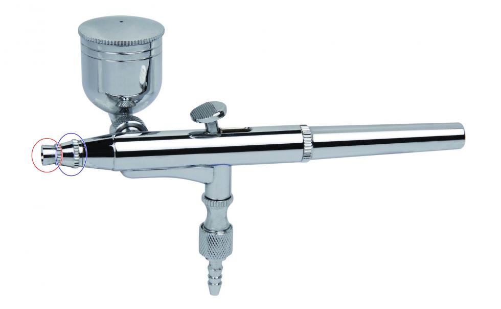 사진에서 보이는 빨간색과 파란색 부분을 결합해서 에어를 분사하면 침을 뱉는군요(바람이 나오면선 도료는 탁탁탁탁 하면서 튀어 나오는듯...).
