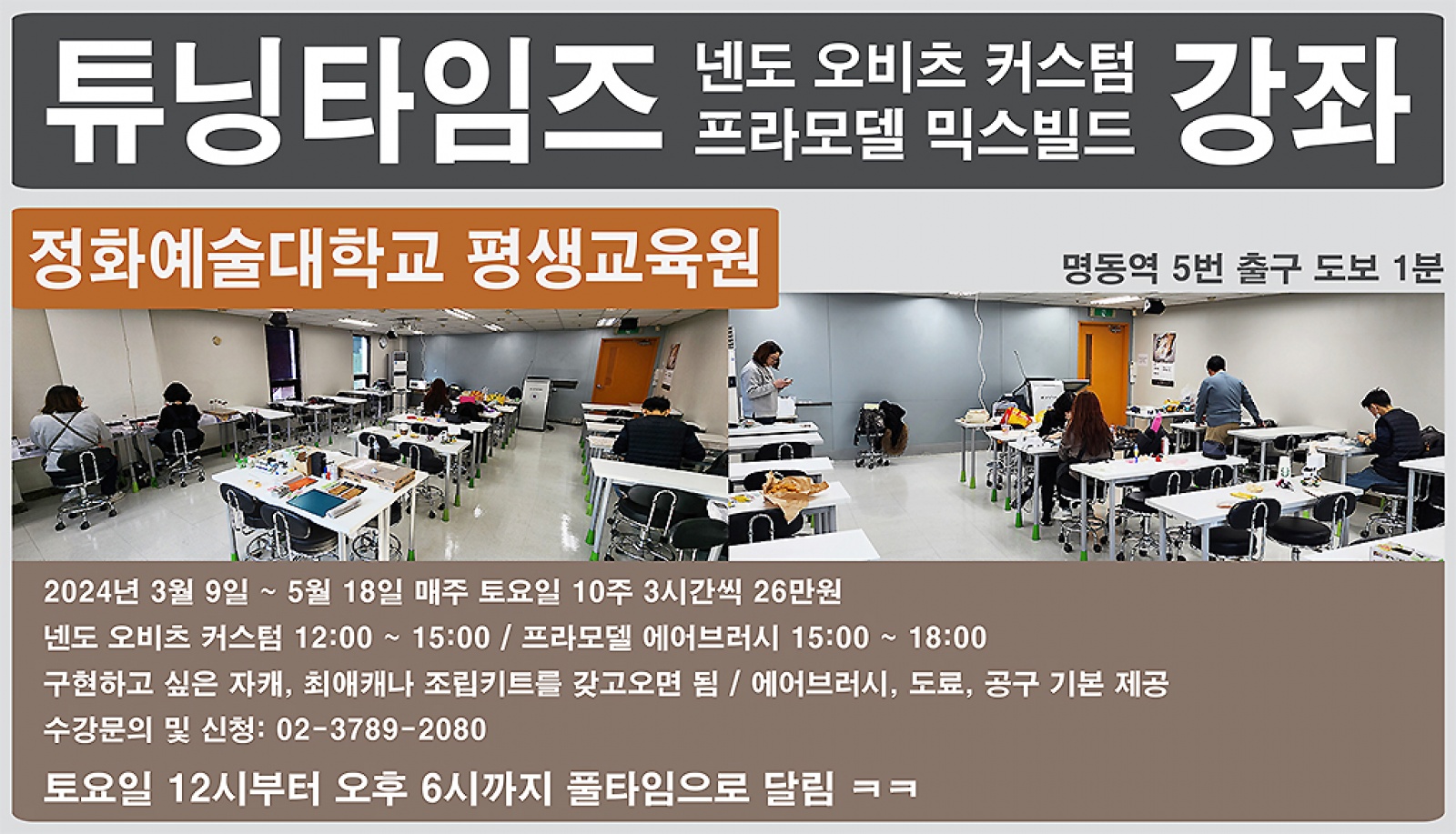 넨도 오비츠 커스텀은 물론 프라모델 믹스빌드 수업을 함께 병행하고요, 소수정예 5명까지만 모집합니다.