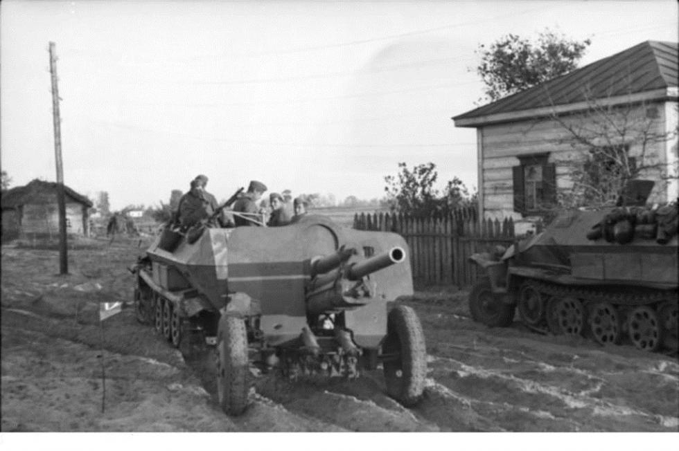 1943년 10월 중부전선에서..소련군에게 노획한 76.2mm M1939를 견인하는 sdkfz.251/4 C형.