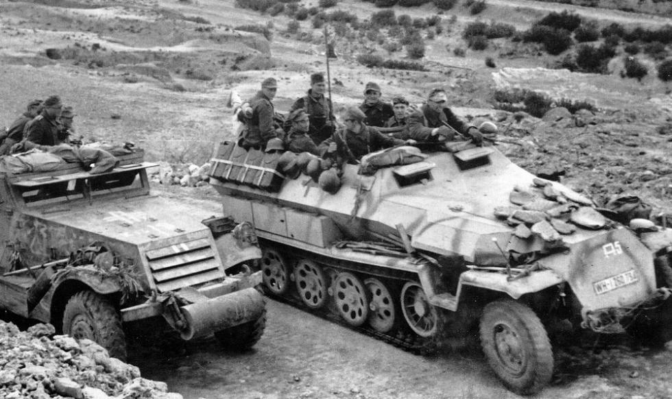 1943년 튀니지..노획한 M3 하프트랙과 sdkfz.251 C형..하노마그 전면 우측부분에 10기갑사단 마크 http://en.wikipedia.org/wiki/10th_Panzer_Division_(Wehrmacht)
