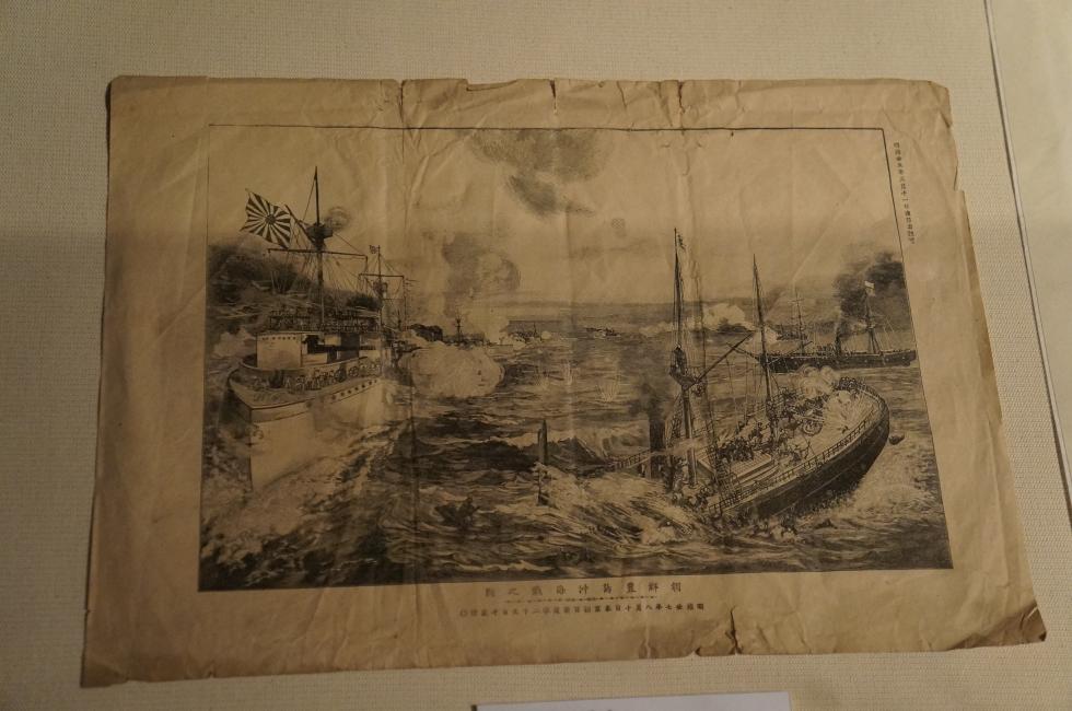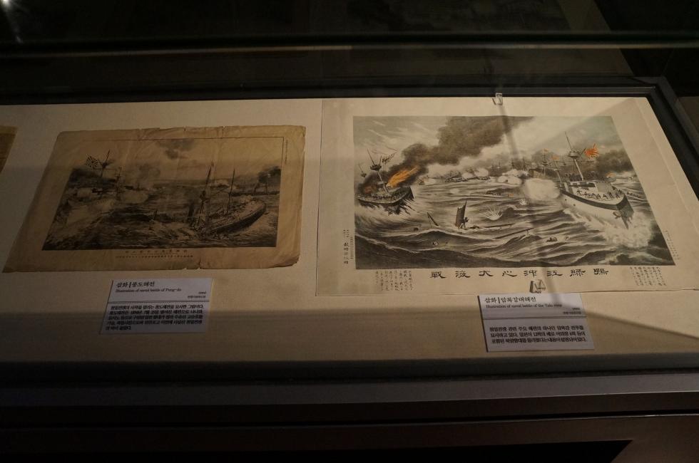고승호 격침과 압록강 해전의 그림.