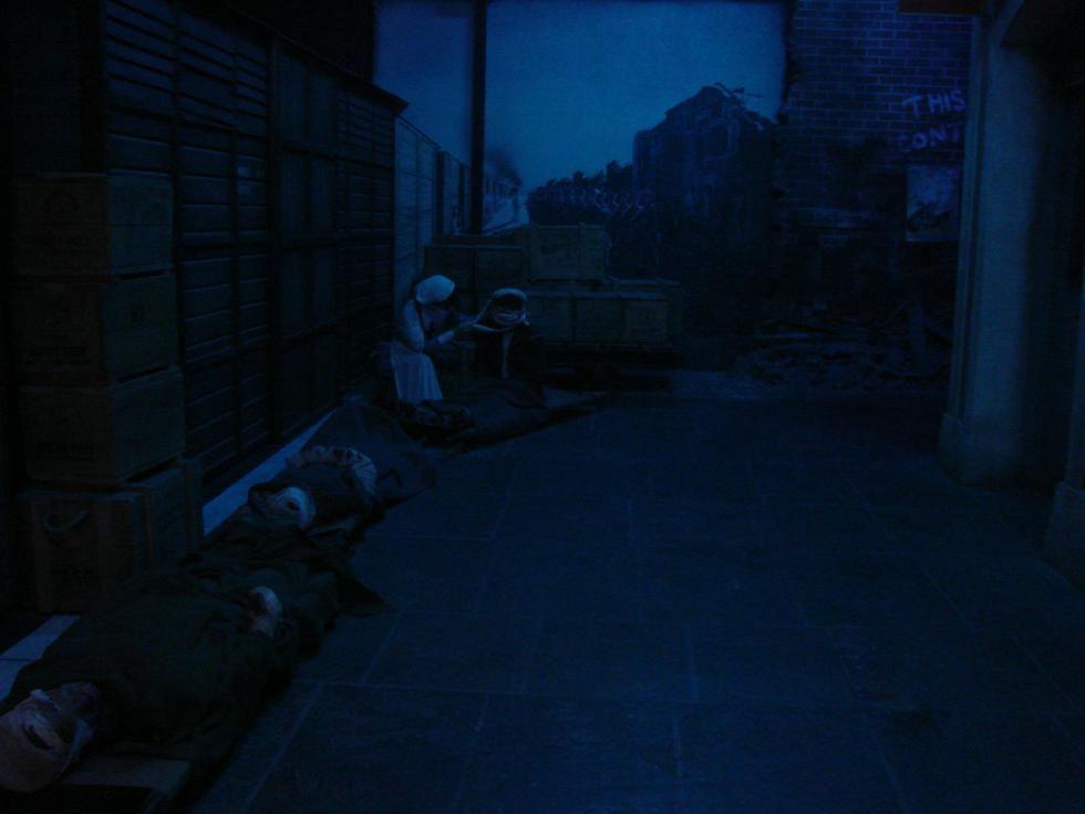 그 옆에서는 부상병들의 신음소리가 들립니다. 딱 더도 덜도 아니고 테마파크 유령의 집 들어가는 분위기.