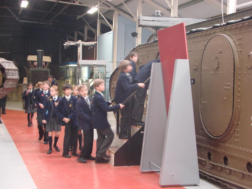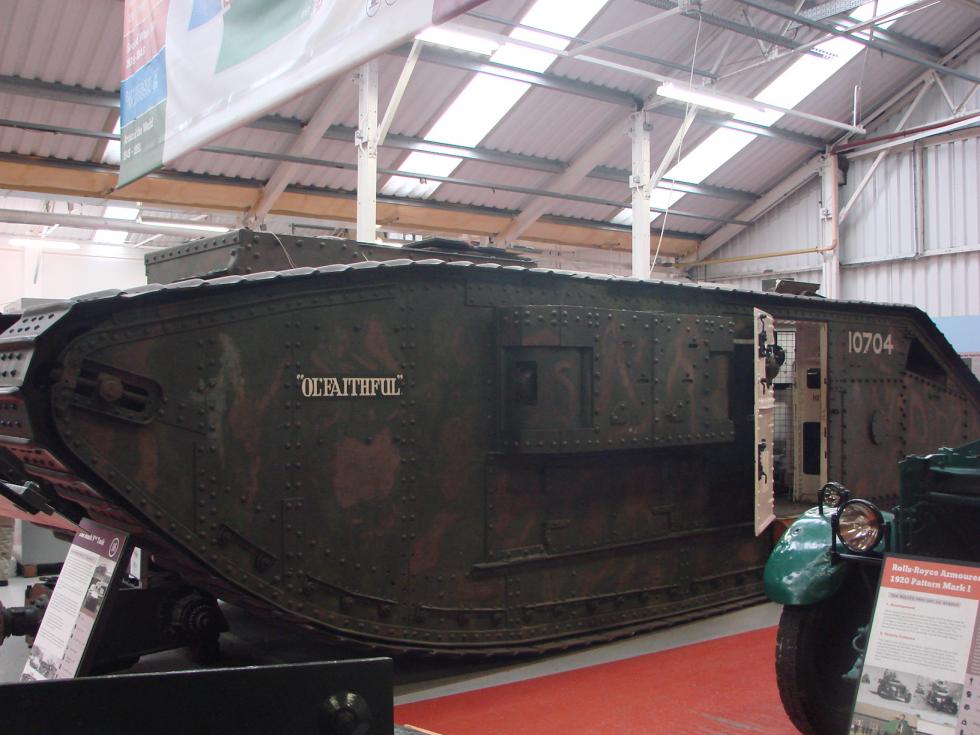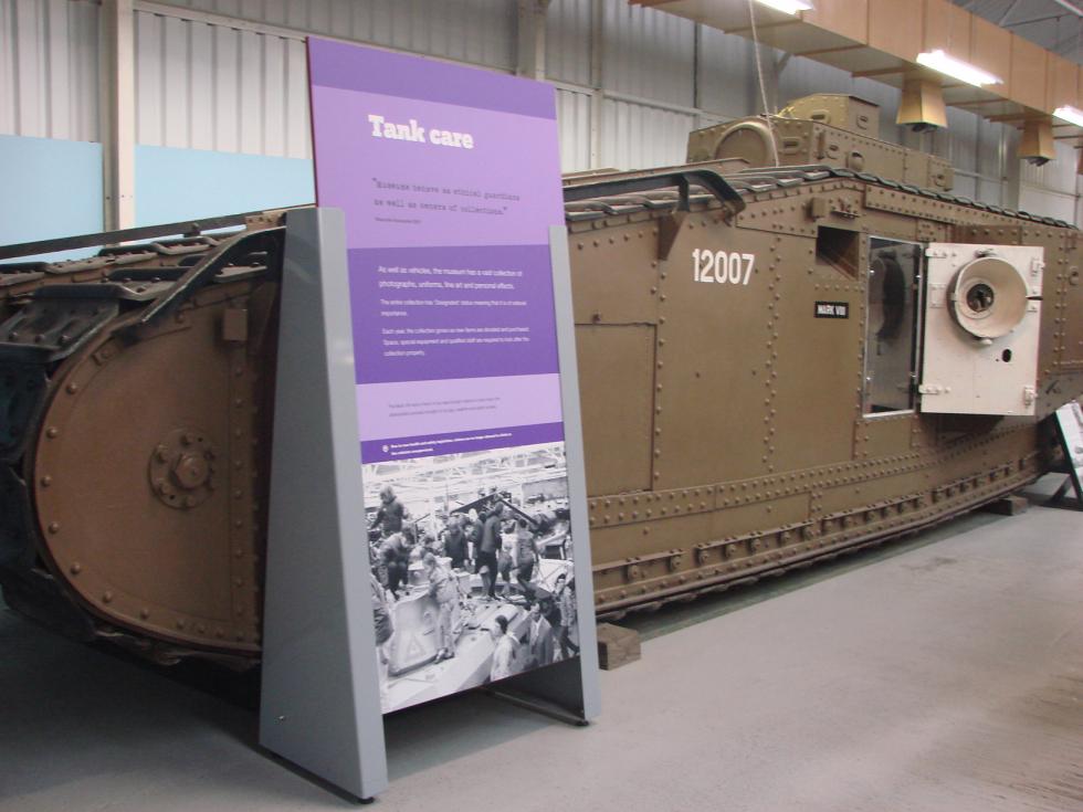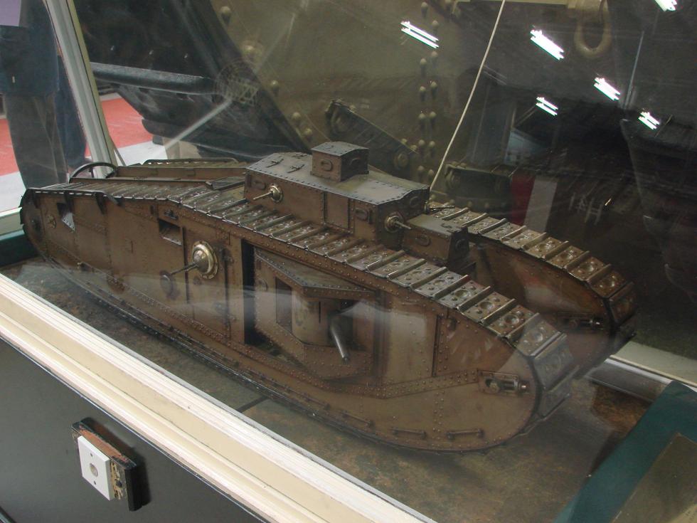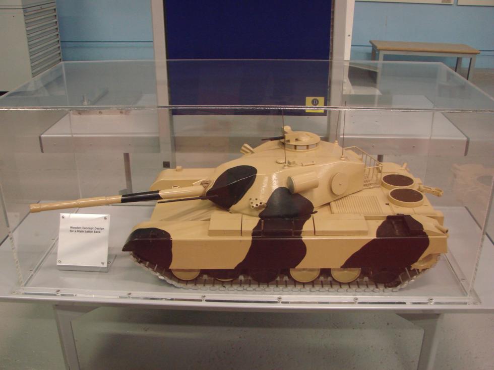 그 옆에 있는 현용 MBT의 모형. 최초의 전차와 어떻게 달라졌는지 비교해보라는 설명이 붙어 있습니다.
