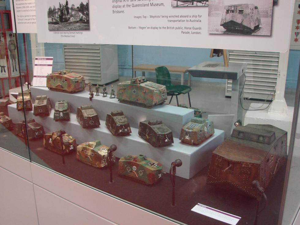 20대가 만들어진 A7V를 모형으로 전부 재현. A7V는 각 차량마다 군함처럼 고유의 이름을 붙였고, 각기 도색과 세부 디테일이 다릅니다.