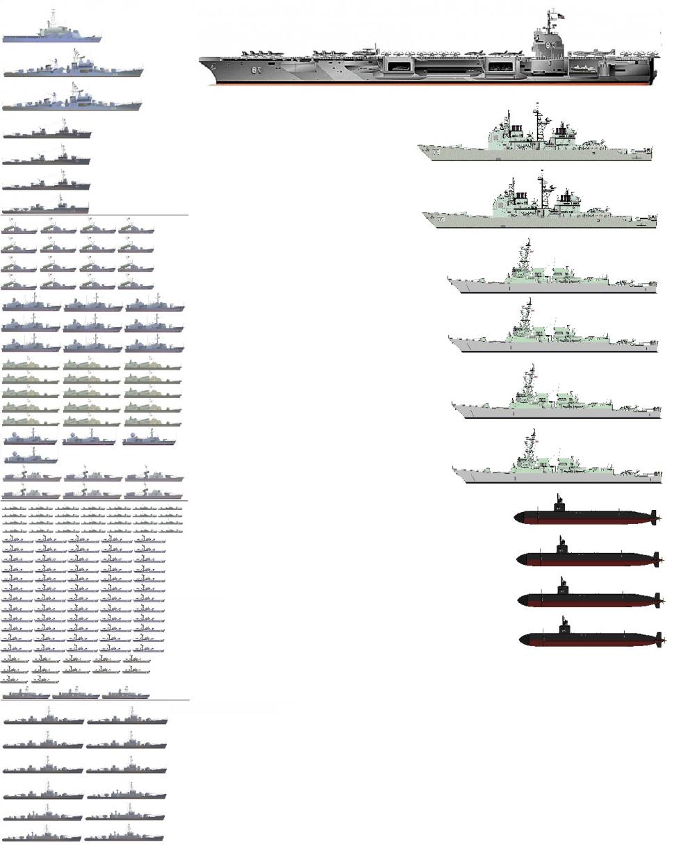 항모는 전단 구성방식에 따라 함정숫자가 늘어날 수 있지만 (항모가 두척이상이 될 수도) 기본적인 호위선 정도로 세팅하고 보조함선 제외
