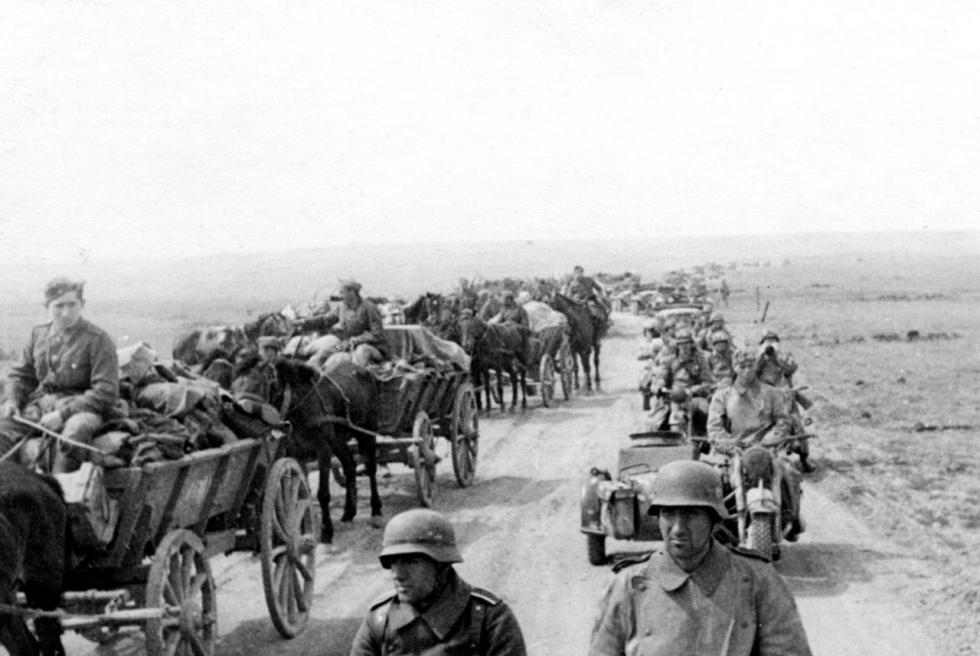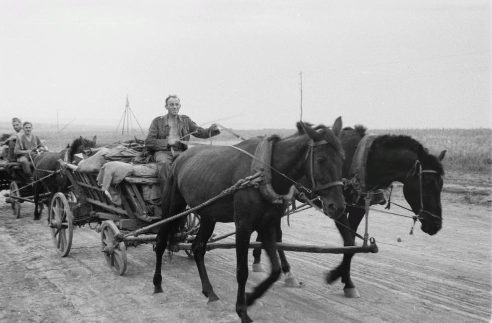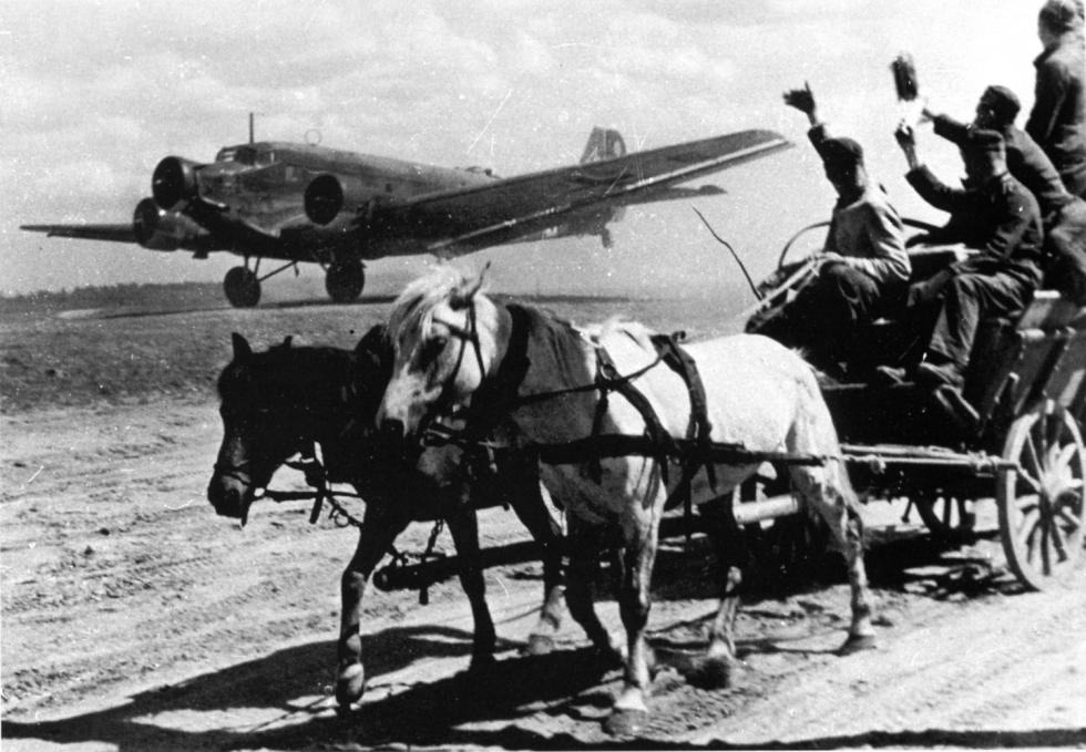 동부전선의 독일군 마차와 Ju 52 수송기...