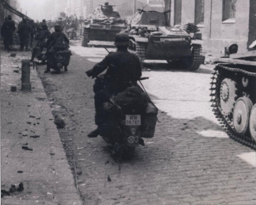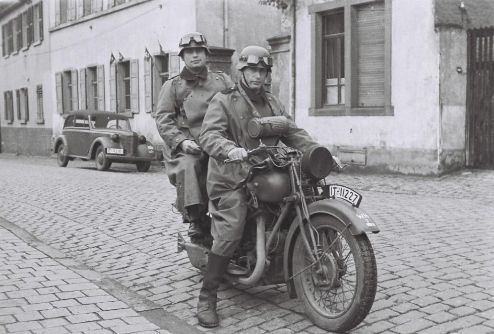 1940년 프랑스전...2호,3호전차와 모터사이클 뒷면 번호판 아래 1기갑사단 마크와 모터사이클대대 3중대 전술마크.