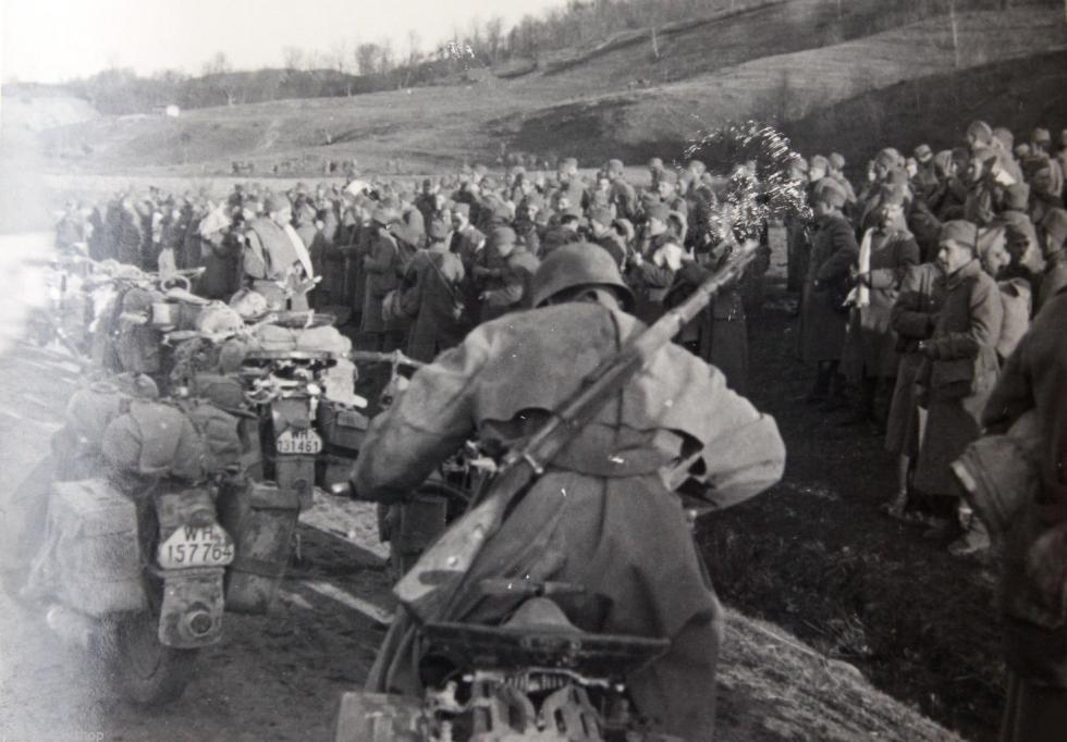 1941년 4월 유고..독일 제14기갑사단 병사들과 유고군 포로들.