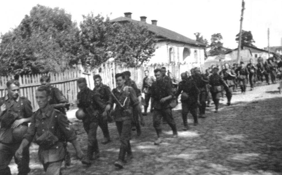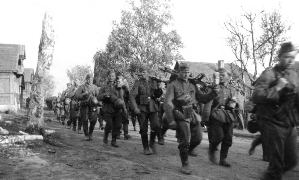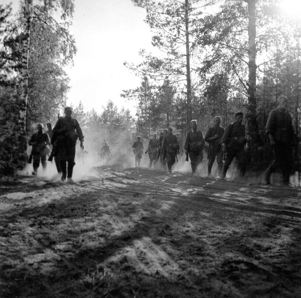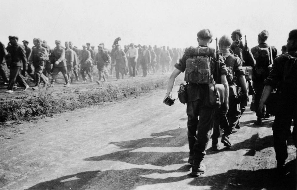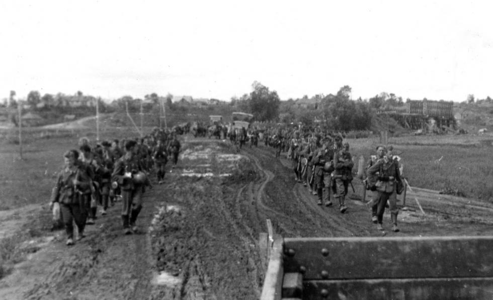 남부전선의 제1산악사단 병사들과 소련군 포로 행렬..