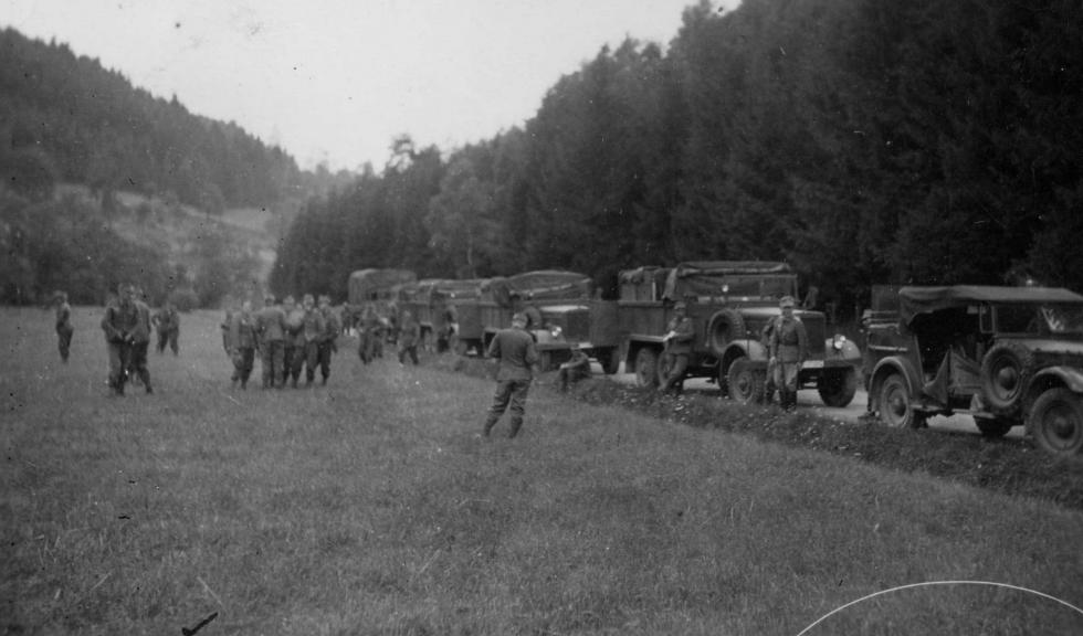 산악사단 차량 행렬.. 중간에 Einheits Diesel 트럭 세대.
