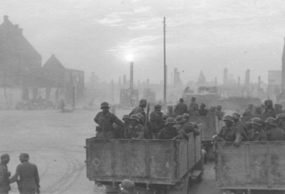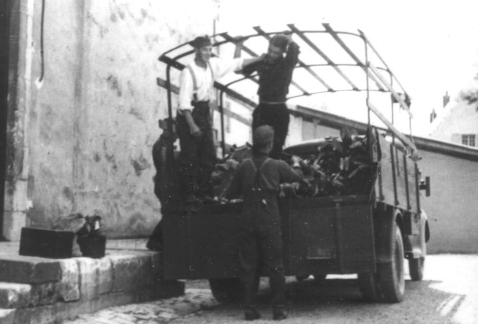 1940년 프랑스...트럭을 밀고있는 프랑스군 포로들.
