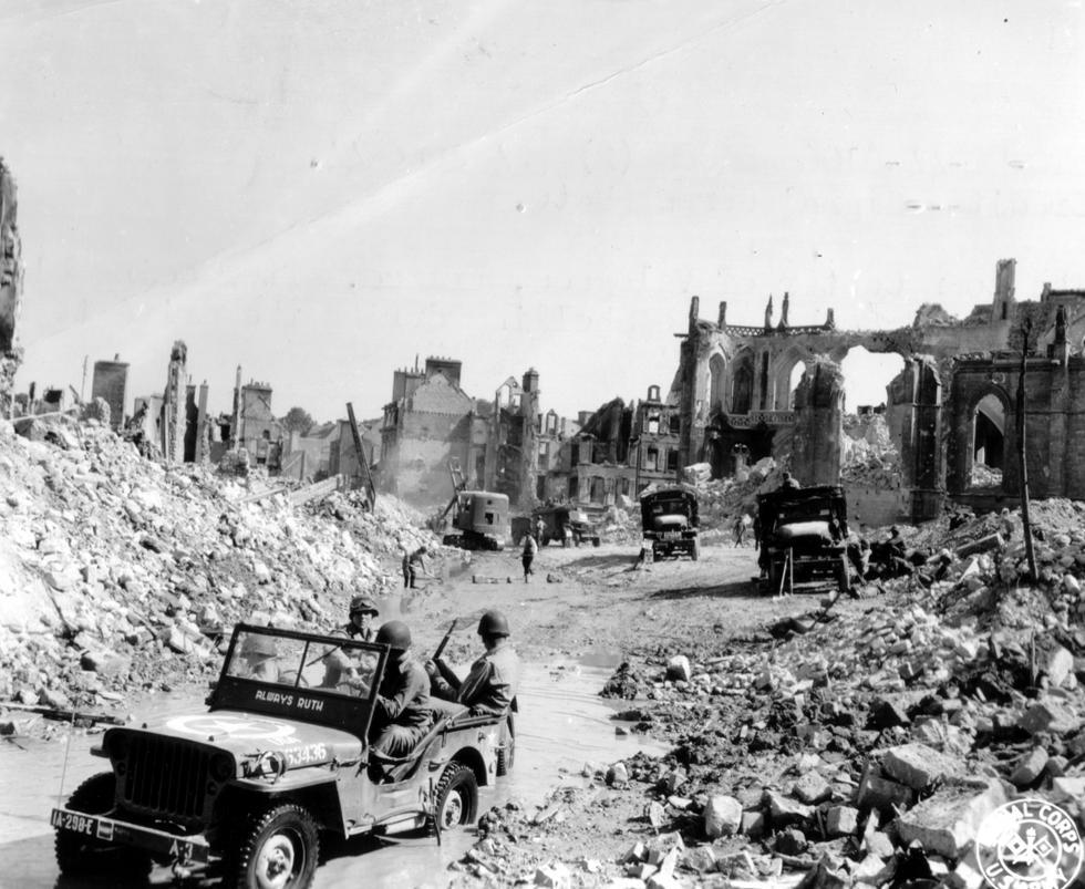 1944년 7월26일 생로(코브라 작전)..미9보병사단 사단장과 지프.