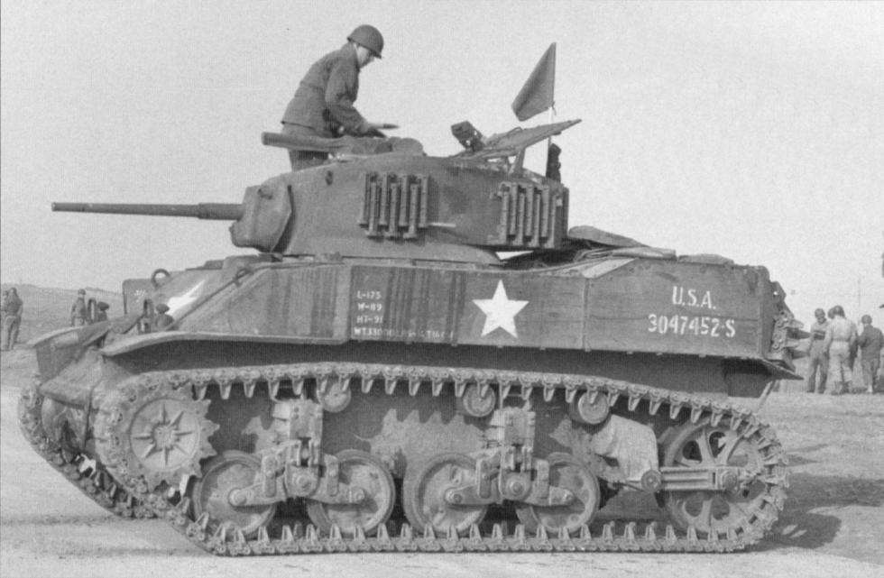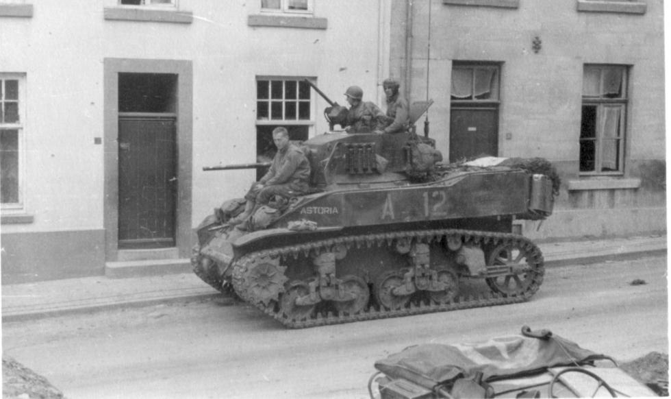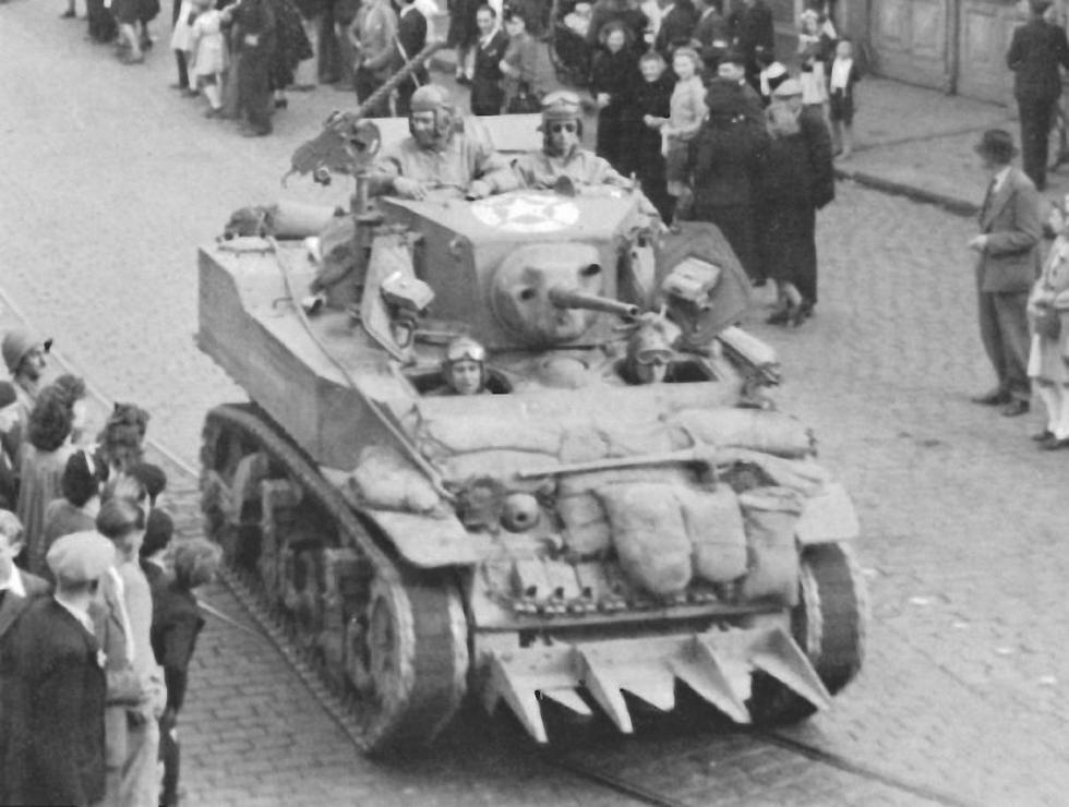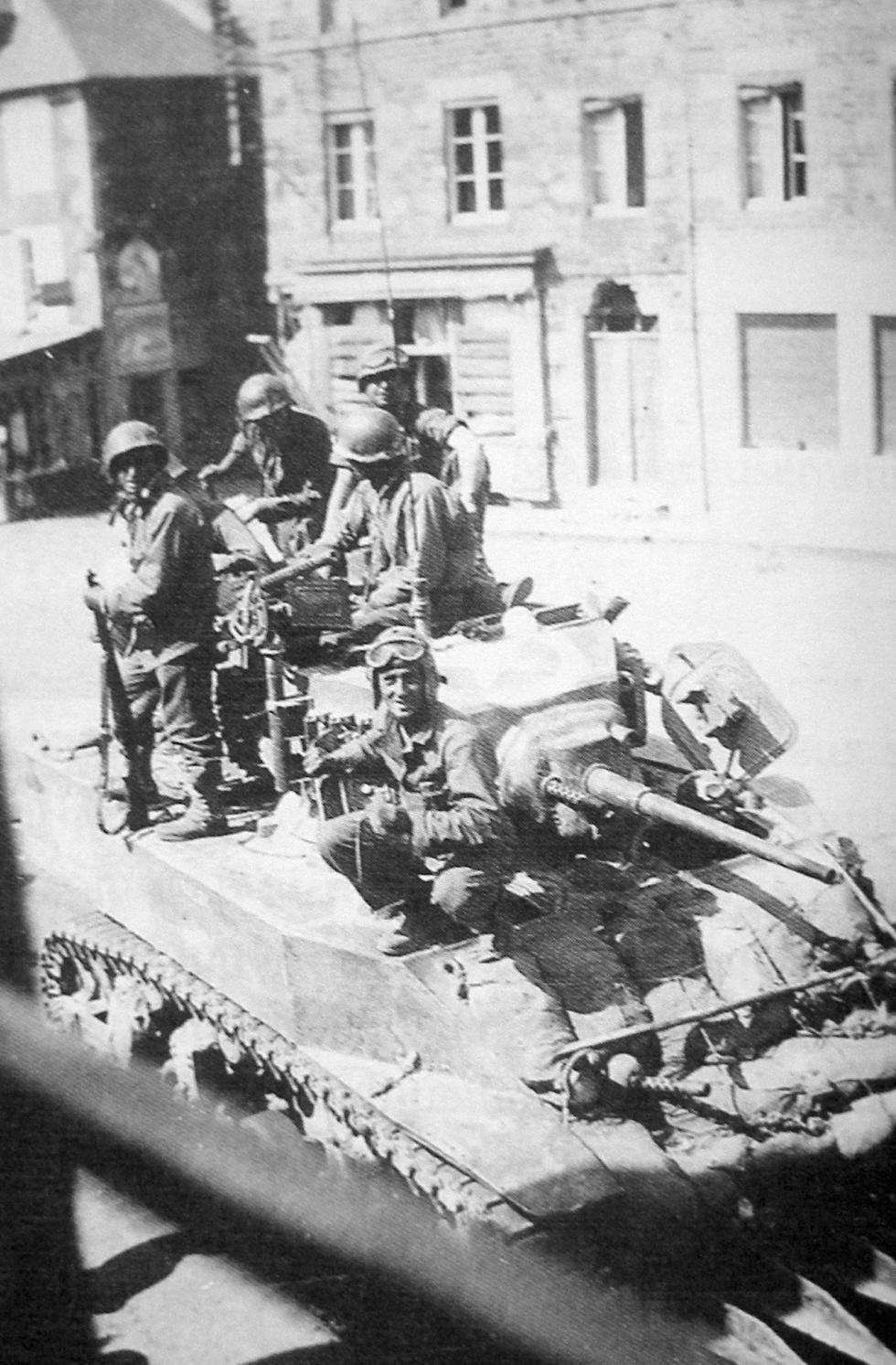 1944년 7월 생로..미29보병사단을 지원하는 747전차대대 소속의 스튜어트 전차.