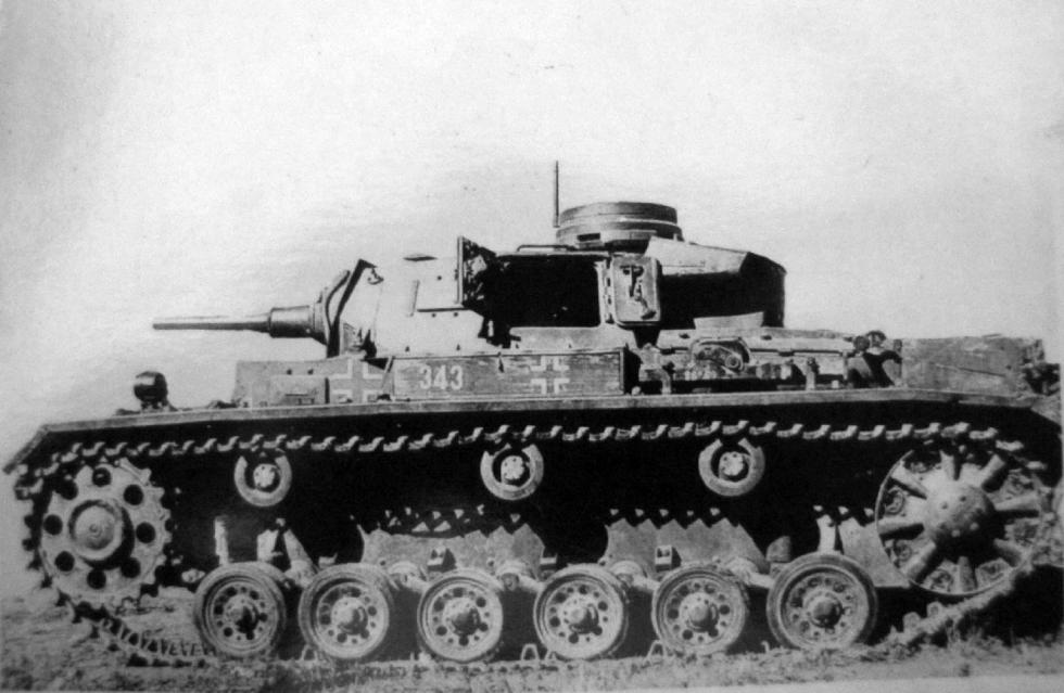1941년 발칸 전선에서 초기형태의 3호F형.. 포탑 측면에 5기갑사단 31전차연대의 악마 얼굴 마크