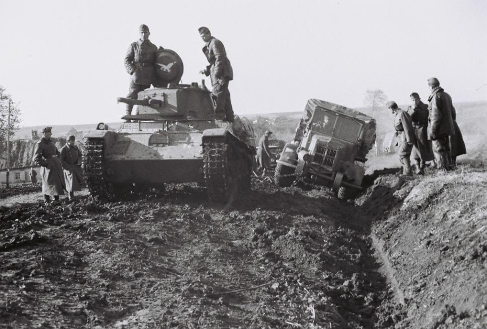 동부전선에서 헝가리군 트럭을 견인하는 톨디.