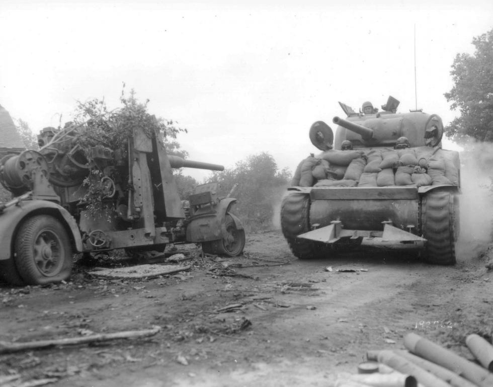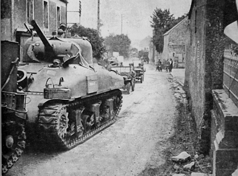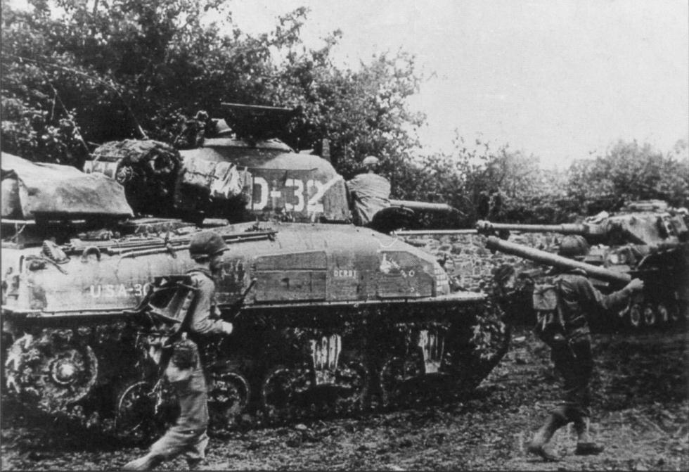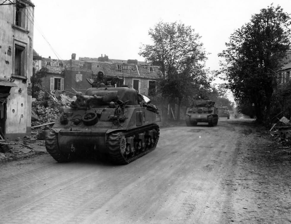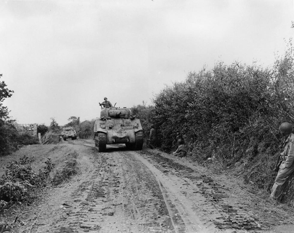 1944년 7월 쿠탕스에서 4기갑사단으로 보이는 셔먼.
