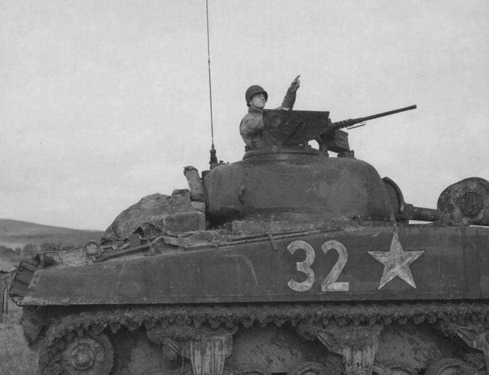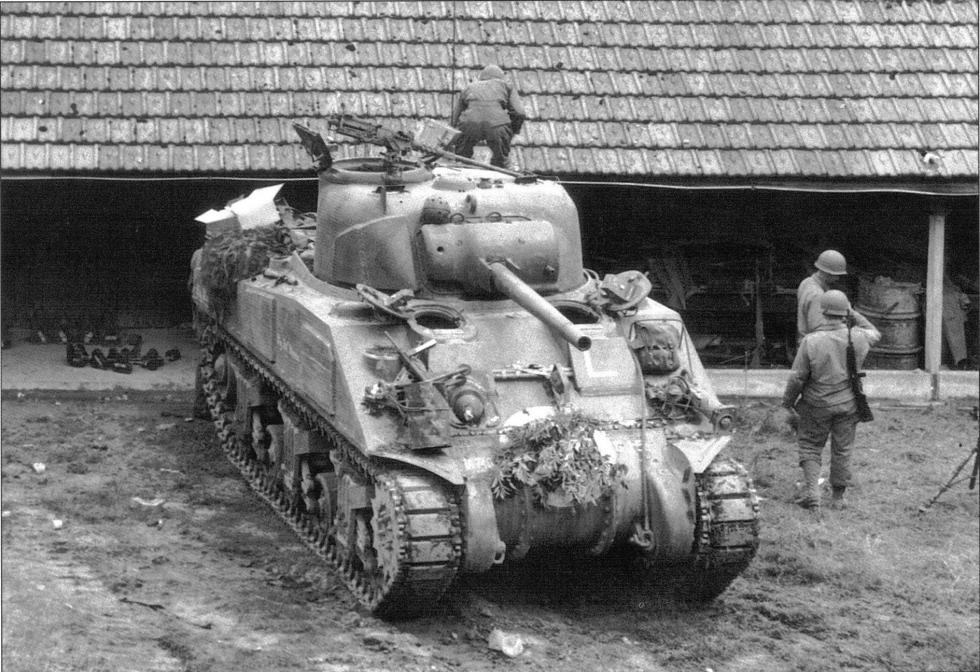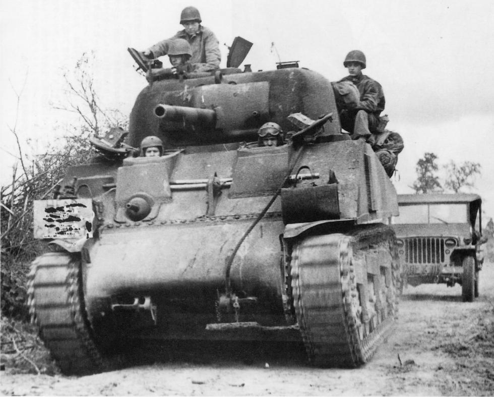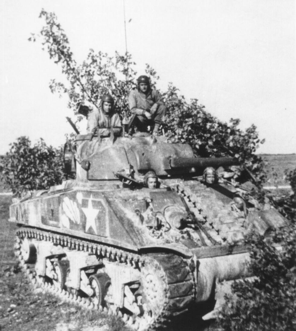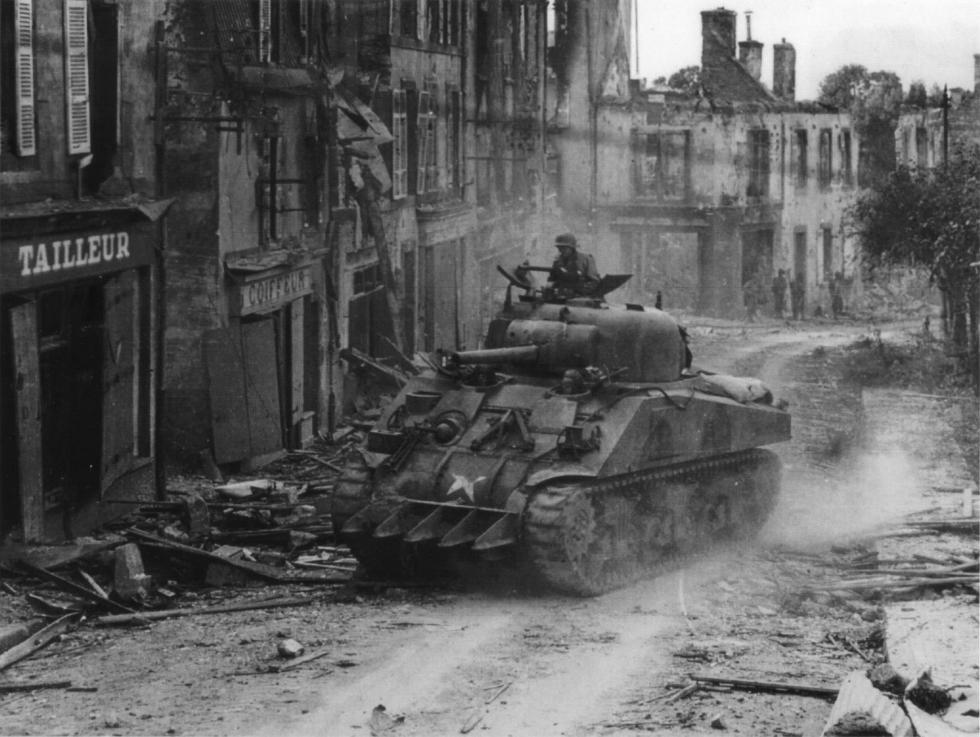 1944년 7월 쿠탕스에서 4기갑사단으로 보이는 셔먼.