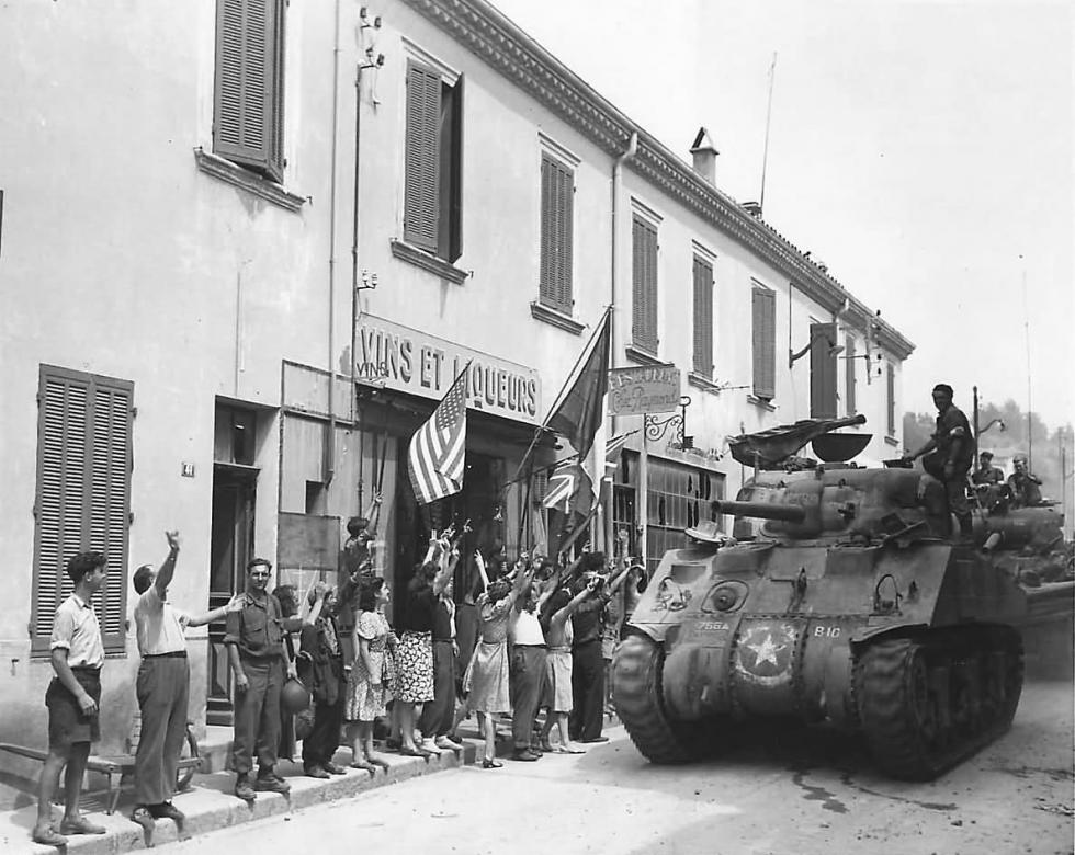 1944년 8월 남프랑스에 상륙한 756전차대대 셔먼 (드라군 작전)