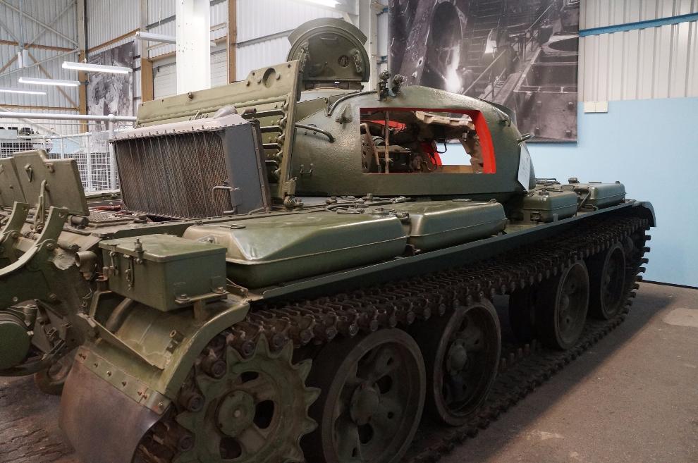 생산공정 설명을 지나가면 절개해놓은 T-55가 있습니다.