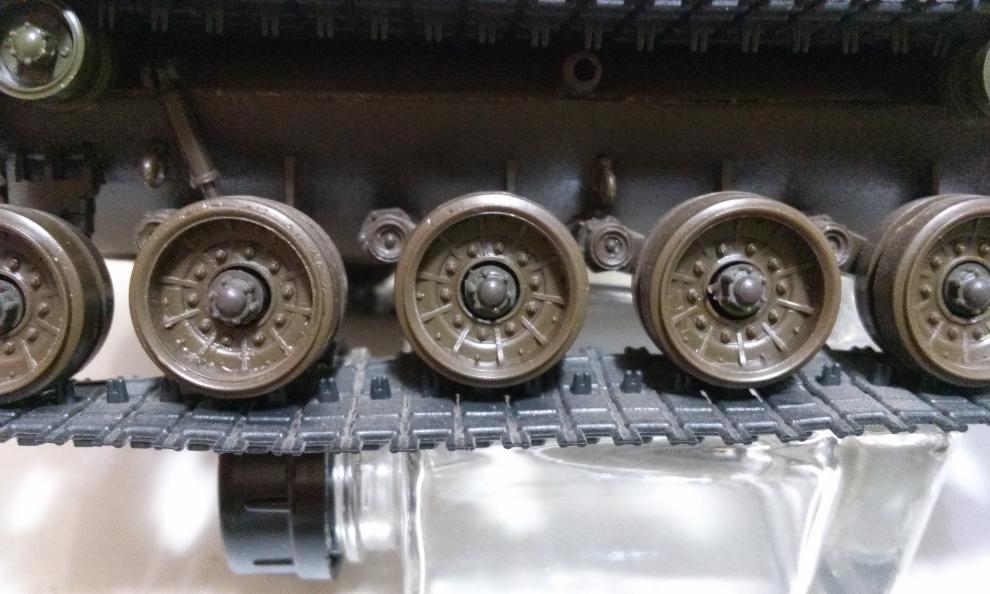 아이들러 샤프트의 녹이 상당히 끼어있습니다. 부식의 정도가 심해서 녹제거를 해준다거나 동일 규격의 알류미늄 샤프트로 교체해주면 좋겠다는 생각이 드는군요. 인형은 원체품에 포함된 건 아닌 것 같습니다. 체로키 전차는 2명의 승무원이 제품에 포함된 것으로 알고 있습니다.