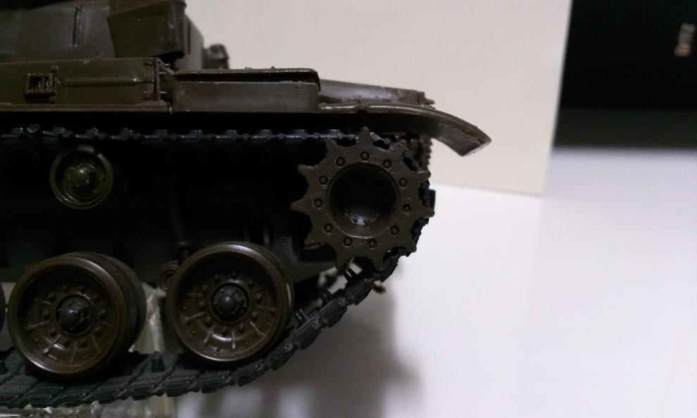 후면입니다. 방열판에 나있는 직선 홈이 M60과는 좀 차이가 있는 것 같습니다. 휀더 등 형상이 전반적으로 양호합니다. 포탑의 바스켓이 없는 상태라서 정 후면에서 본 모습은 조금 빈약한게 아닌가 합니다.