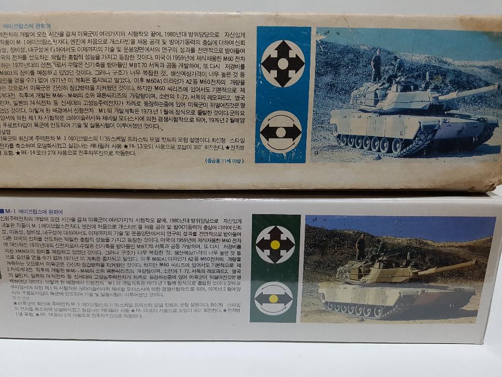 "미육군M-1에이브람스"라는 문구가 인상적인 박스아트를 선사해주었거든요. 위 간지는 1990년 M1A1에서도 그대로 사용된 것 같네요. 이후 원가절감이나 통일성 부여를 위해서 제품명이 빠진 하나의 디자인이 채용된 듯 합니다. 물론 개성이 없어져서 아쉬운 부분입니다.