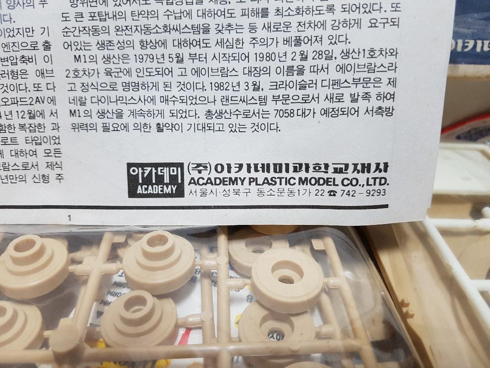 90년에 첫 발매된 M1A1에서는 회귀를 하였는데, "(주)아카데미과학교재사"로 80년대 구판 스타일을 띄고 있습니다.