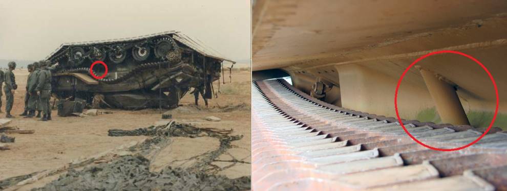 공수낙하 중 뒤집힌 M551(좌측)의 빨간 원은 우측 사진의 서포터로 생각되는 부분인데 이것은 출시예정인 RMF의 M551A1 3D 이미지에서도 보이는 부분입니다. 주변 병사들의 복장상태로 봐선 베트남전이 한참 지난 이후로 판단됩니다.