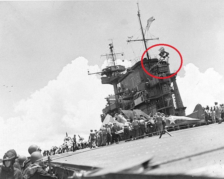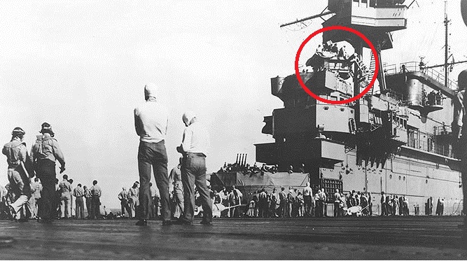 1942년 8월 7일 동솔로몬 보름전쯤 찍힌 사진. 4연장 1.1인치 포가 이때까지 있었습니다. 9월 진주만에서 파손부를 수리하면서 아일랜드 전후의 1.1인치포는 40mm 보포스 2연장으로 교체됩니다.
