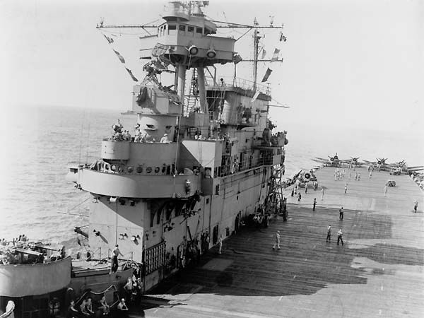 1944년식으로 불리는(개장 자체는 43년) 후기형 아일랜드. 함교 모양도 곡선으로 변했고 함교 현창도 원형이며(CV-8호넷이랑 비슷함) Mk37/Mk12가 장착되었습니다. 탐색레이더도 SK로 교체됩니다. 후기형은 이밖에도 함체에 벌지 추가 등 변화가 크기에 1942년형과 금방 구분이 가능합니다.