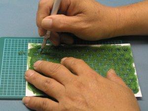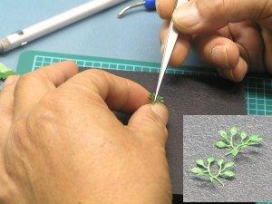 3단계 : 핀셋으로 가운데 줄기부분을 눌러주어 나뭇잎에 입체감을 줍니다.